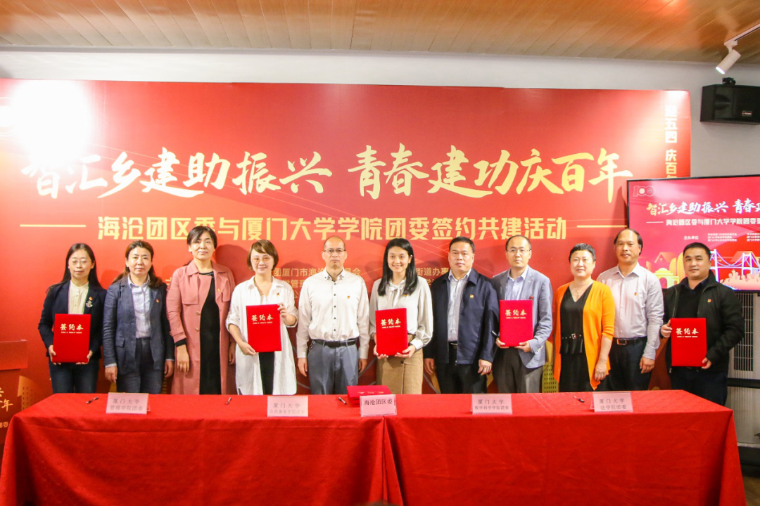 4月28日上午,为迎接建党100周年暨纪念五四运动102周年,继承和发扬“五四精神”,深入开展“学党史、强信念、跟党走”学习教育活动,凝聚青春力量,助力乡村振兴,数学科学星空(中国)团委与海沧团区委合作共建,组织师生参加了在海沧区东孚香草园开展的“智汇乡建助振兴 青春建功庆百年”海沧团区委与厦门大学星空(中国)团委签约共建活动。厦门市团市委副书记洪清岩,海沧区委副书记庄海英,海沧区团区委副书记卢梅花,数学科学星空(中国)党委副书记丁昌利、数学科学星空(中国)团委书记于正伟及管理星空(中国)、公共事务星空(中国)、法星空(中国)师生代表出席共建活动。