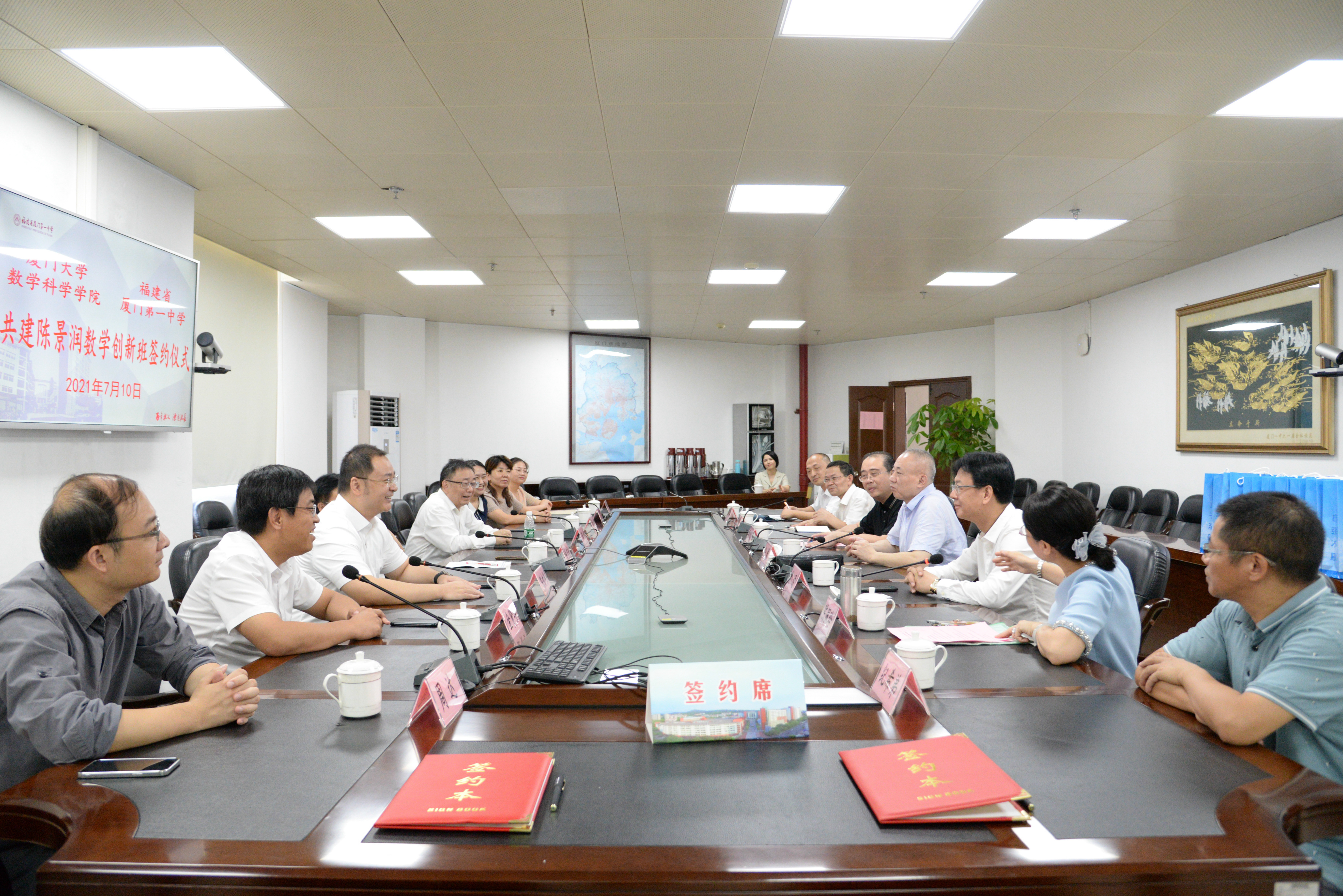 为深入贯彻落实国家关于全面加强基础科学研究总体部署,推进大学、中学数学教育一体化衔接,培养数学英才后备力量,7月10日,数学科学星空(中国)和厦门一中举行共建陈景润数学创新班签约仪式并为创新班揭牌。数学科学星空(中国)党委书记黄宝秋,学校科技处处长谭忠,著名数学家陈景润院士的儿子陈由伟,数学科学星空(中国)副院长金贤安,厦门一中党委书记、校长陈文强,原厦门市教育局巡视员、厦门一中原校长任勇,厦门一中校友会会长、厦门大学88届校友曾通,厦门一中数学正高级教师、特级教师王淼生为创新班揭牌。