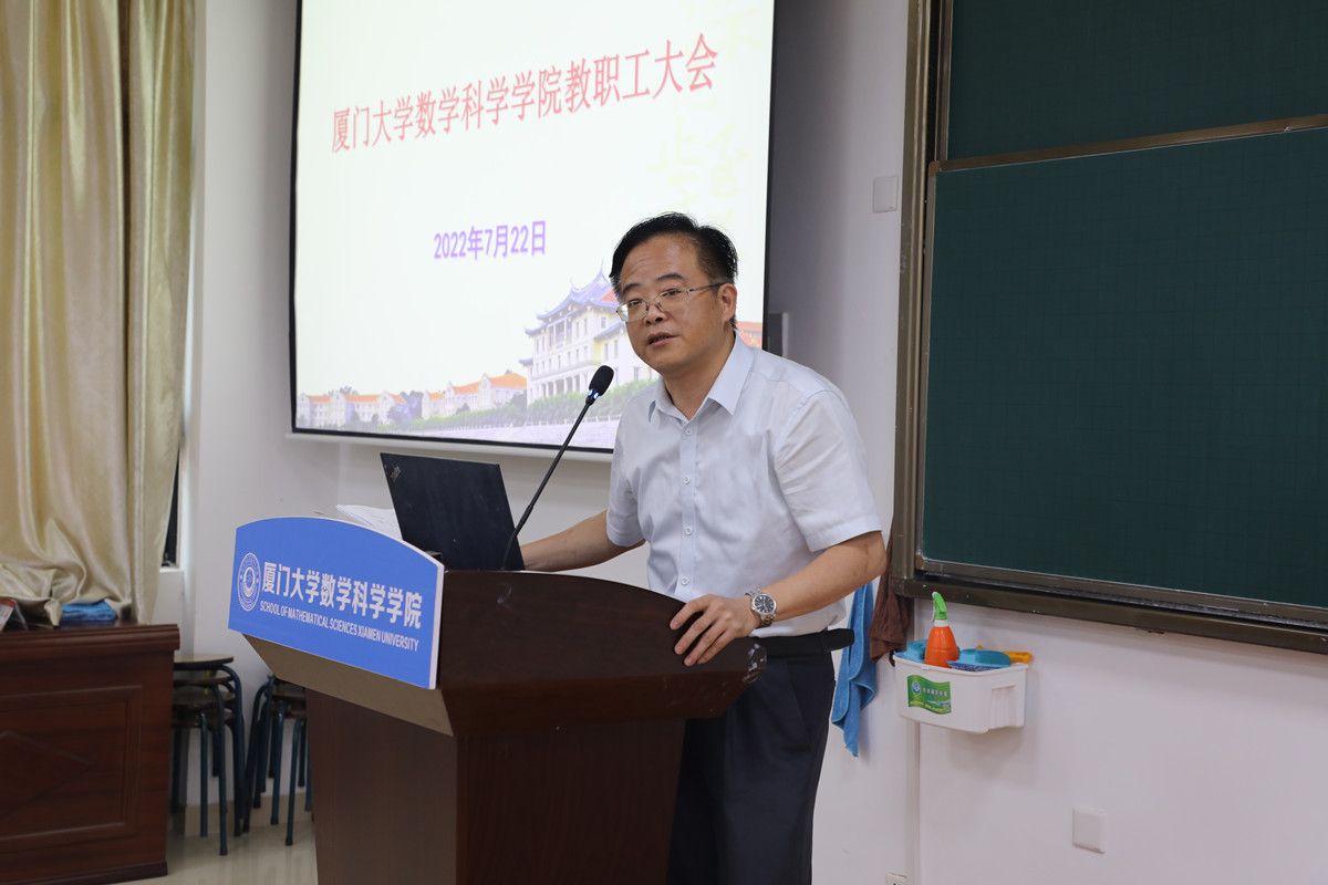2022年7月22日下午,星空(中国)在实验楼106召开教职工大会,部署期末相关重要工作,星空(中国)党政领导、工会负责人和教职员工参加会议。院党委书记黄宝秋主持会议。