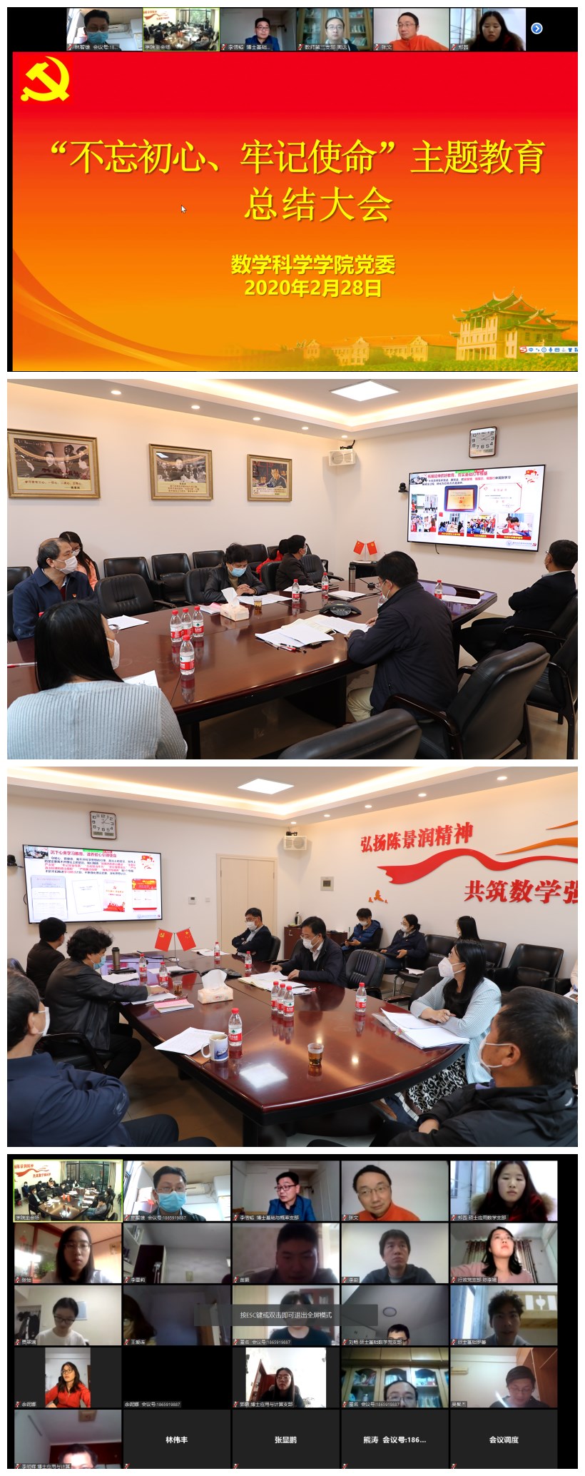 根据校党委统一部署,2月28日下午,数学科学星空(中国)“不忘初心、牢记使命”主题教育总结会在海韵园行政楼313会议室召开。校党委第四巡回指导组组长司卓亚、星空(中国)党委委员、部分党员代表在做好个人防护的情况下现场参加会议,全体党支部书记,其他党员、师生代表通过随会网络视频会议平台参加会议。