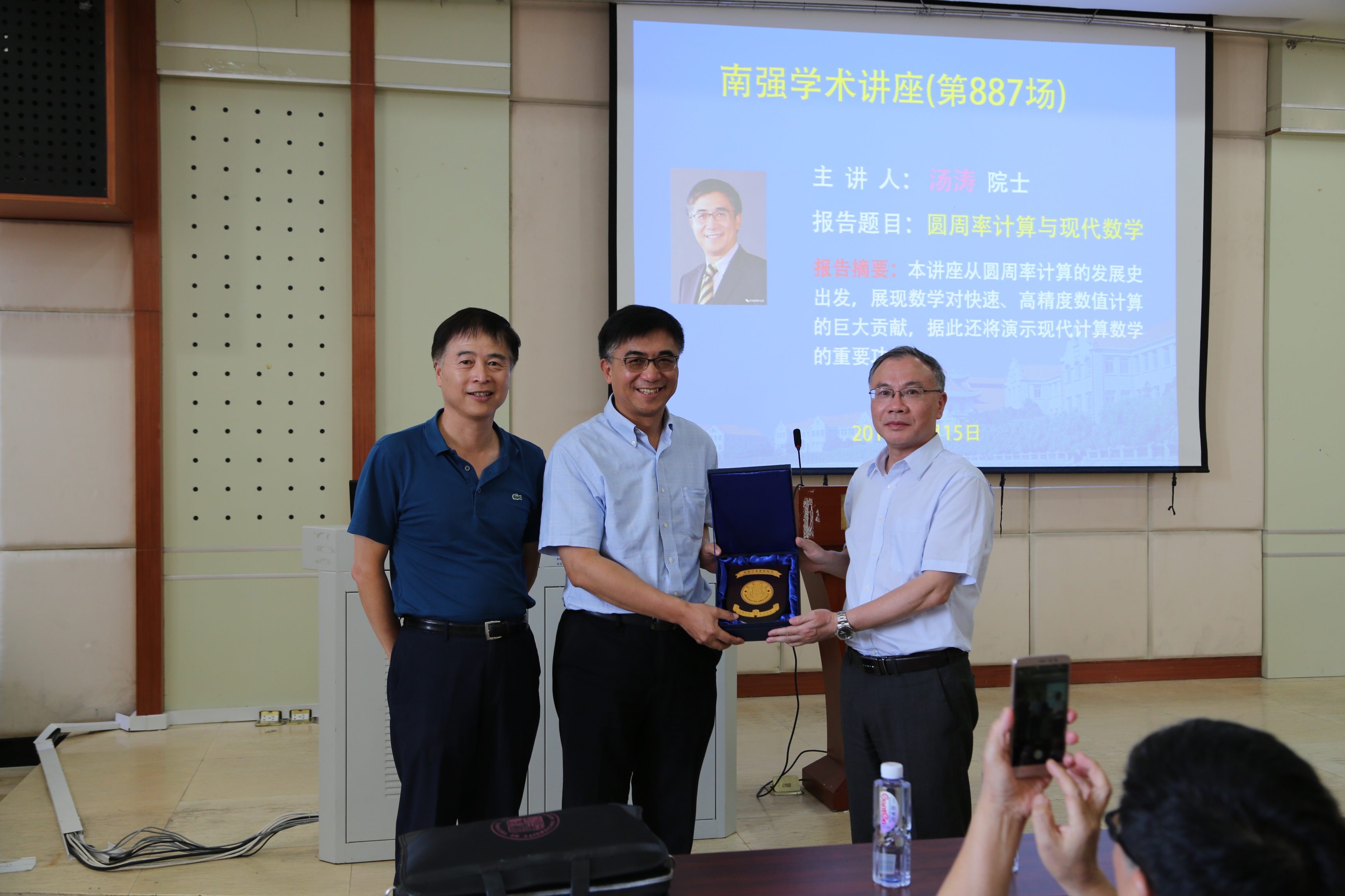 6月15日下午,中国科星空(中国)院士汤涛教授应邀做客厦门大学“南强学术讲座”,在海韵园教学楼504报告厅为师生带来了一场题为《圆周率计算与现代数学》的精彩学术讲座。校长助理、数学科学星空(中国)院长谭绍滨教授为汤涛院士颁发“南强学术讲座”纪念牌,“”专家教授主持学术报告,百余名师生聆听了学术讲座。