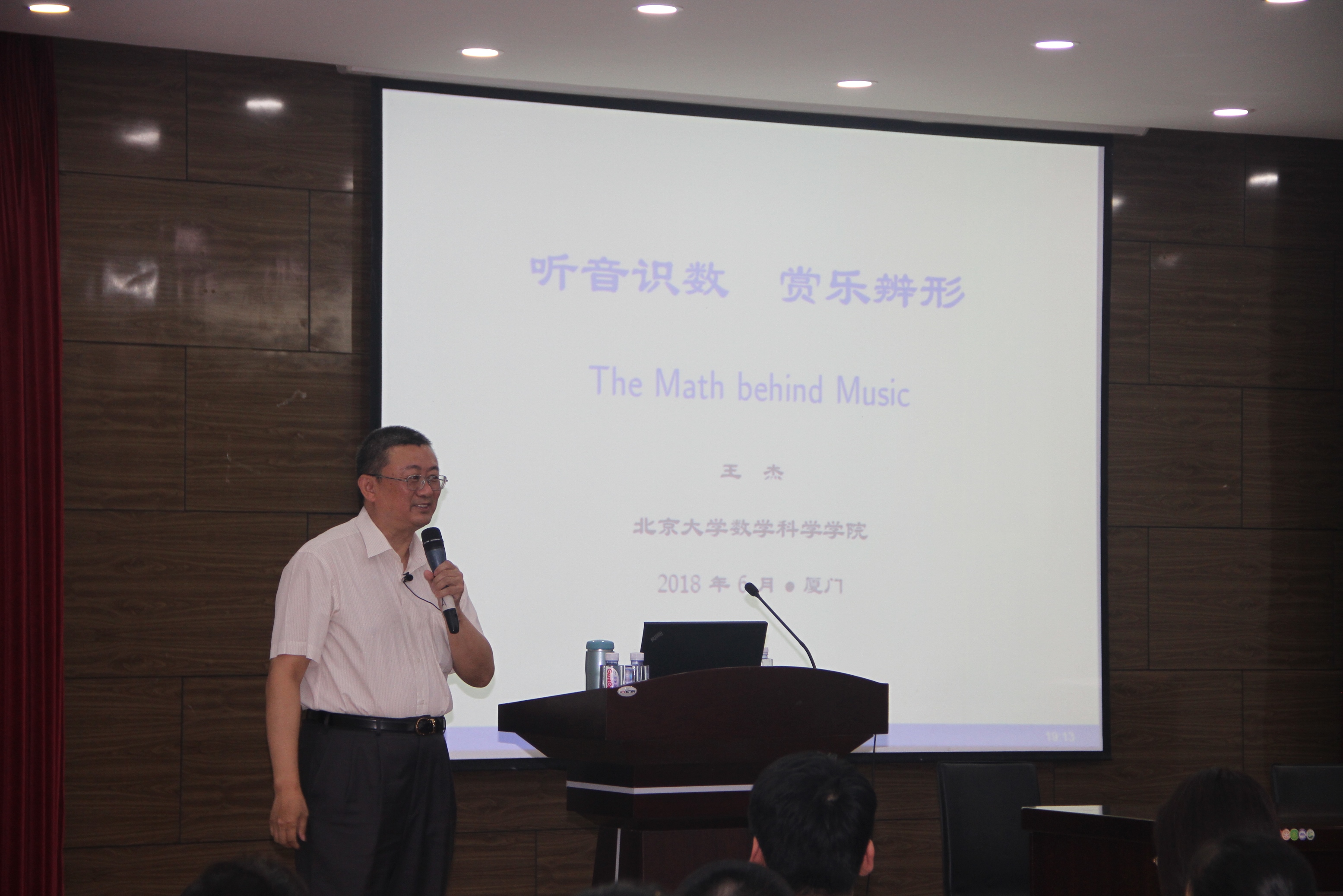 6月7日晚上,北京大学王杰教授做客厦门大学通识大讲堂,以“听音识数•赏乐辨形”为题,向我校师生揭示音乐与数学之间深刻的、但又往往不为人知的联系。厦门大学通识教育中心副主任陈舒华教授主持讲座,来自全校的300余位师生现场聆听讲座。