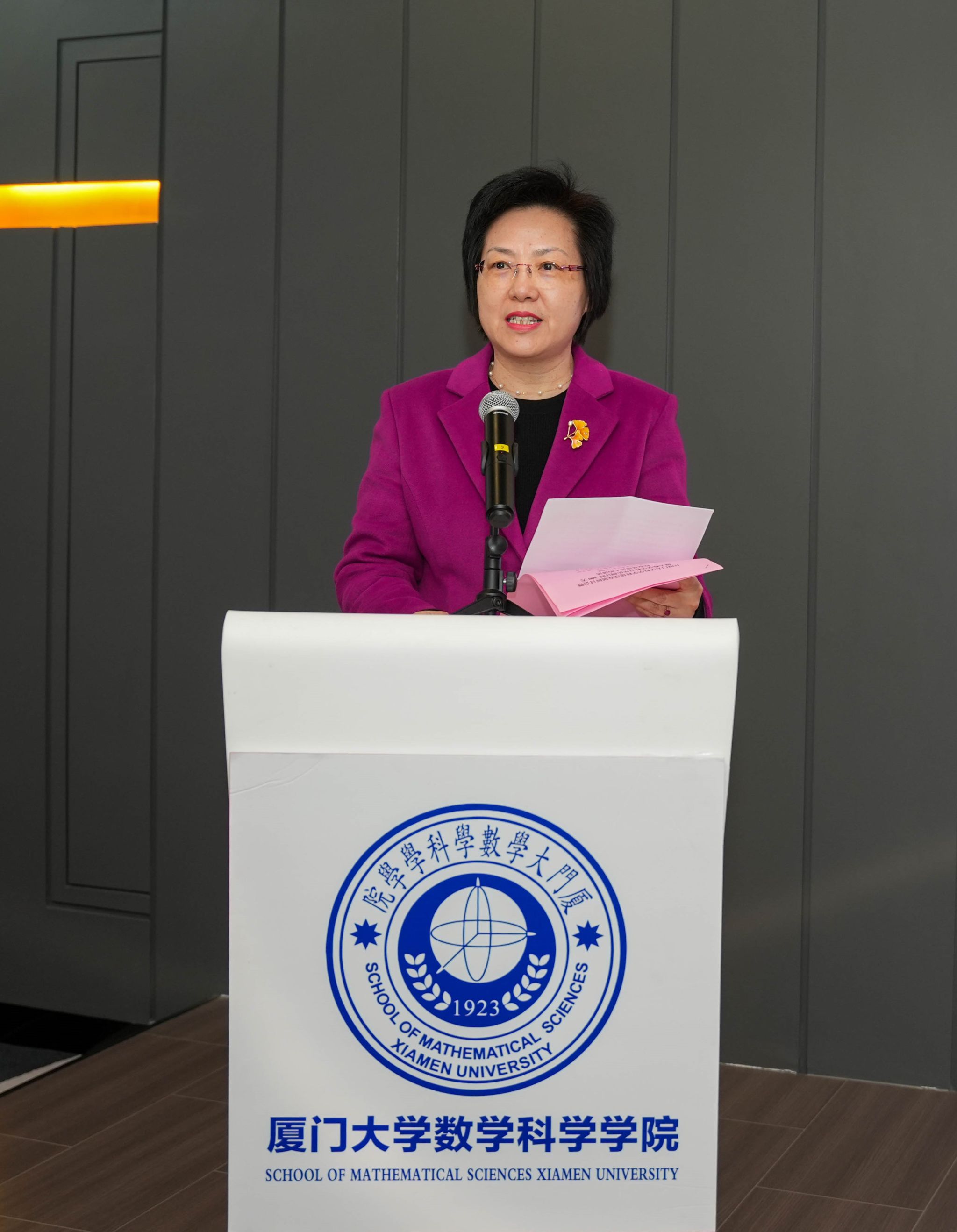 厦门大学副校长邓朝晖首先代表学校向本次会议的顺利召开表示祝贺,对出席会议的校友们表示欢迎和感谢。她表示,厦大数学学科具有悠久办学历史和显著办学声誉,许多著名学者曾在此开展科学研究与教育教学工作,培养了以柯召院士、陈景润院士、林群院士、陈纯院士等为杰出代表的一大批优秀校友。“景润精神”更是作为厦大数学的精神坐标,激励了一代代青年人永攀高峰。近年来,全面加强基础科学研究已经成为一项国家战略。数学特别是基础数学是科学研究基础中的基础,其重要作用日益突显。她希望值此厦大数学学科百年庆之际,各位校友能多为母校的发展献计献策,凝聚发展共识,汇聚发展力量,画好爱校荣校“同心圆”,也希望数学科学星空(中国)要抢抓历史机遇,谋划好新百年发展的新蓝图,创造更多新的辉煌。
