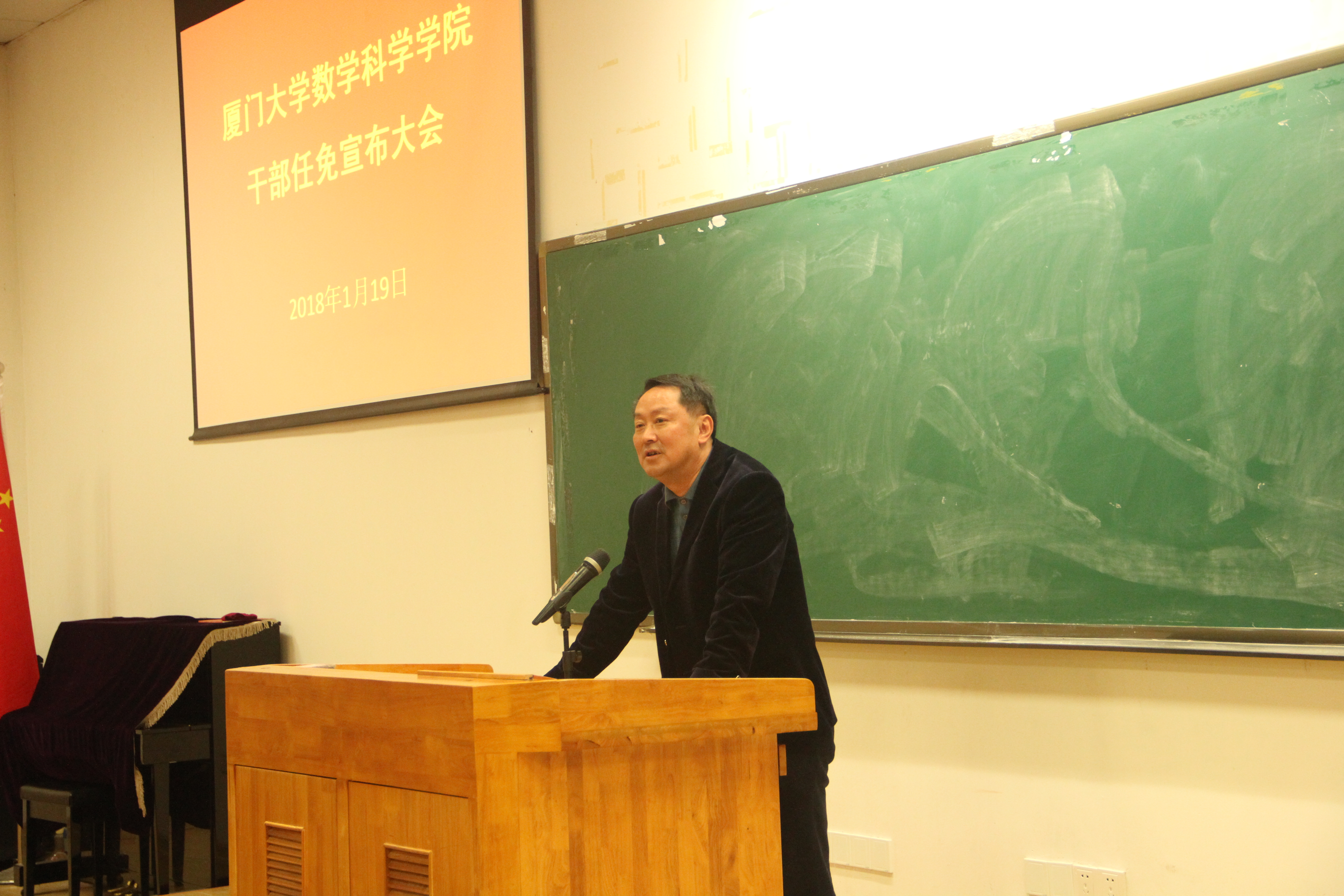 2018年1月19日下午,数学科学星空(中国)在数理大楼117教室召开教职工大会。校党委副书记、副校长李建发在会上宣读了校党委关于数学科学星空(中国)党委书记、副书记职务任免的决定并作讲话。校党委组织部部长梁卫中主持会议。星空(中国)党政班子成员、全体教职工出席会议。