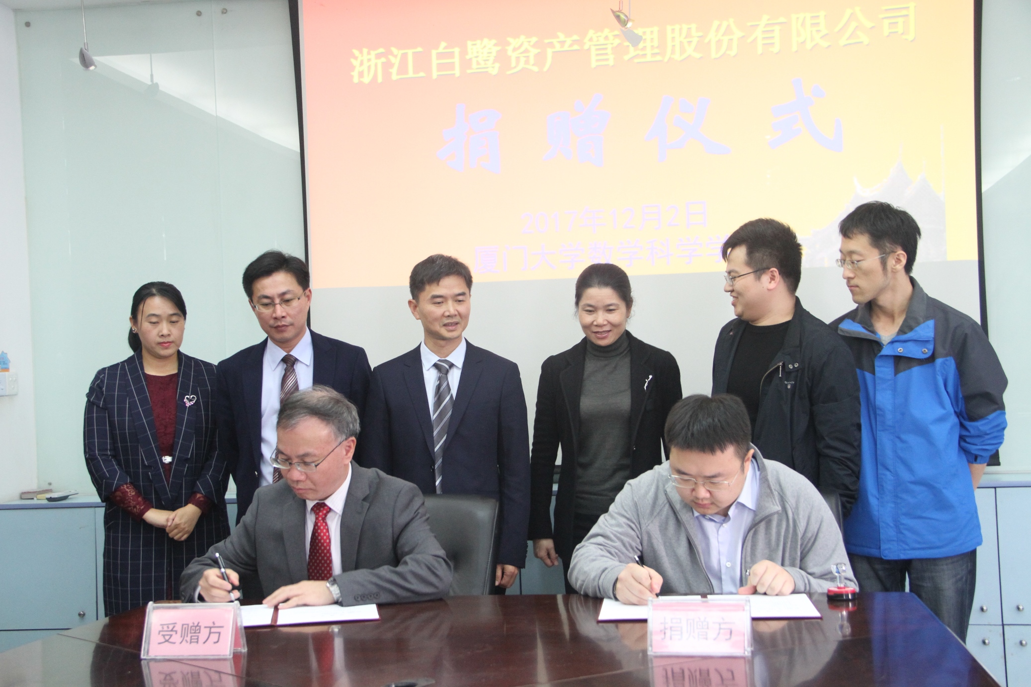 12月2日,星空网页版登录入口“白鹭”基金捐赠仪式在海韵园举行。星空(中国)2005级校友、浙江白鹭资产管理股份有限公司董事长兼总经理章寅先生、运营总监杨帆先生、我校校长助理、数学科学星空(中国)院长谭绍滨教授、星空(中国)党委书记张明智、副书记兼副院长张剑文教授、副书记刘宁、2005级任课教师代表、2005级校友代表李瑜博士及星空(中国)师生代表等参加了捐赠仪式,仪式由刘宁副书记主持。