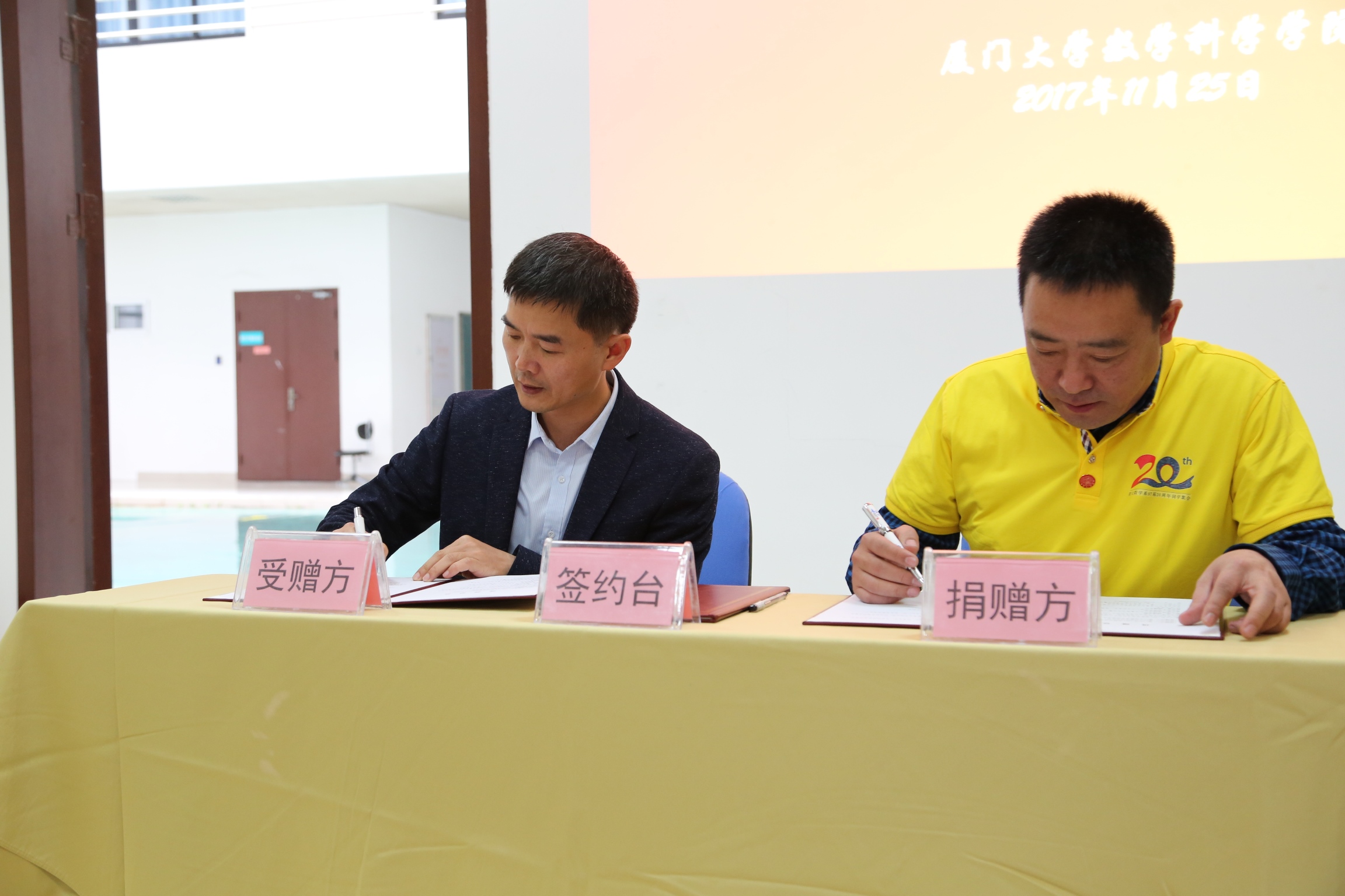 王华杰校友代表1993级校友、张明智书记代表星空(中国)分别在捐赠协议上签字,刘宁副书记代表星空(中国)接受捐赠。