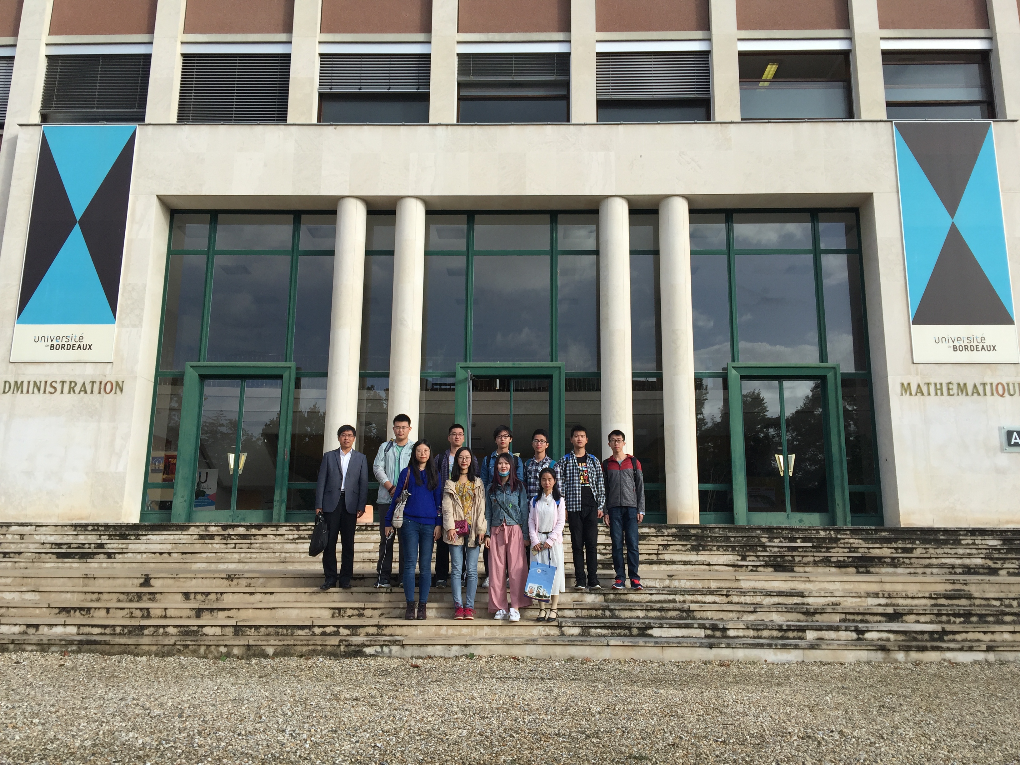 2017年9月10日,访问团赴波尔多大学数学系/数学研究所进行交流。在我院“闽江学者”讲座教授、波尔多大学数学系教授老师的协调安排下,数学研究所所长Jean-Marc Couveignes教授和数学系主任Jean-Jacques Ruch教授分别介绍了科研和教学情况。访问团参观了数学系图书馆,学生宿舍,学生们参加了1门本科生课程和1门研究生课程的体验学习等等。访问团还与数学系副主任Christine Bachoc教授等人以及我院在波尔多大学的交换学生进行来了交流。