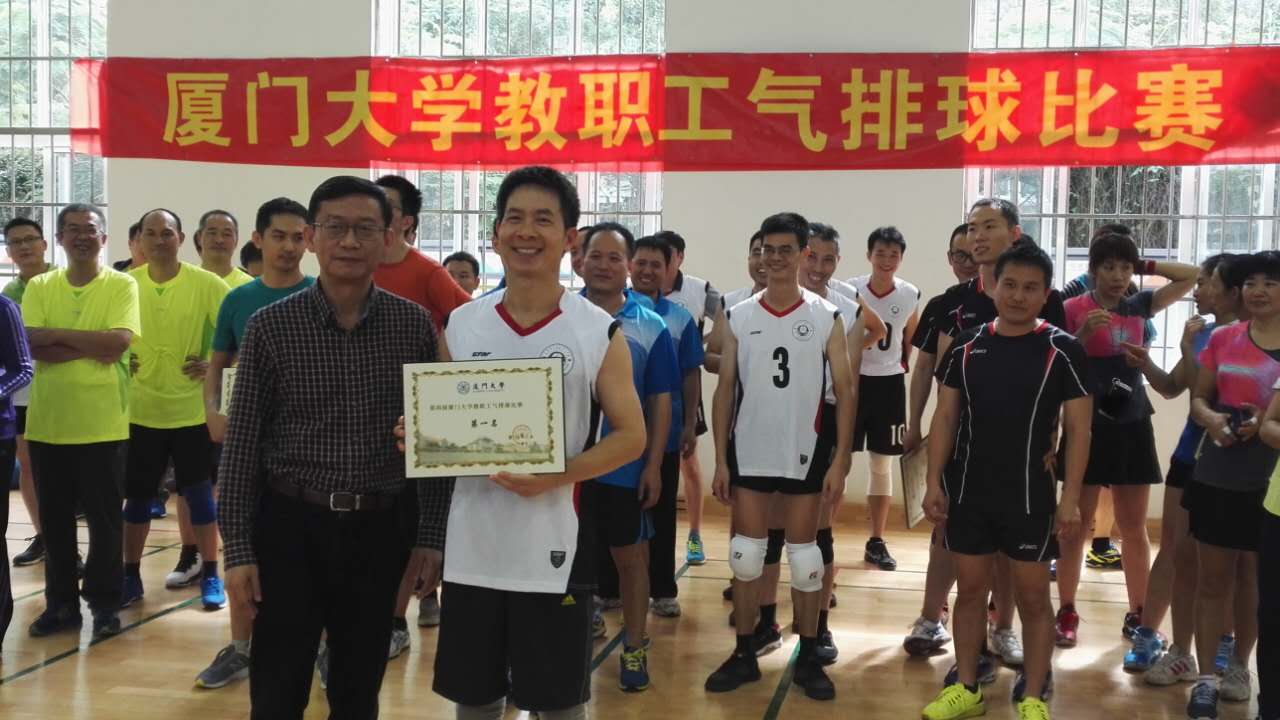 2016年第四届厦门大学教职工气排球赛在12月3日、4日在学校本部风雨球场如火如荼地进行,紧凑、激烈的赛程中,我院教职工队一路过关斩将,携第三届冠军的雄威,成功卫冕。