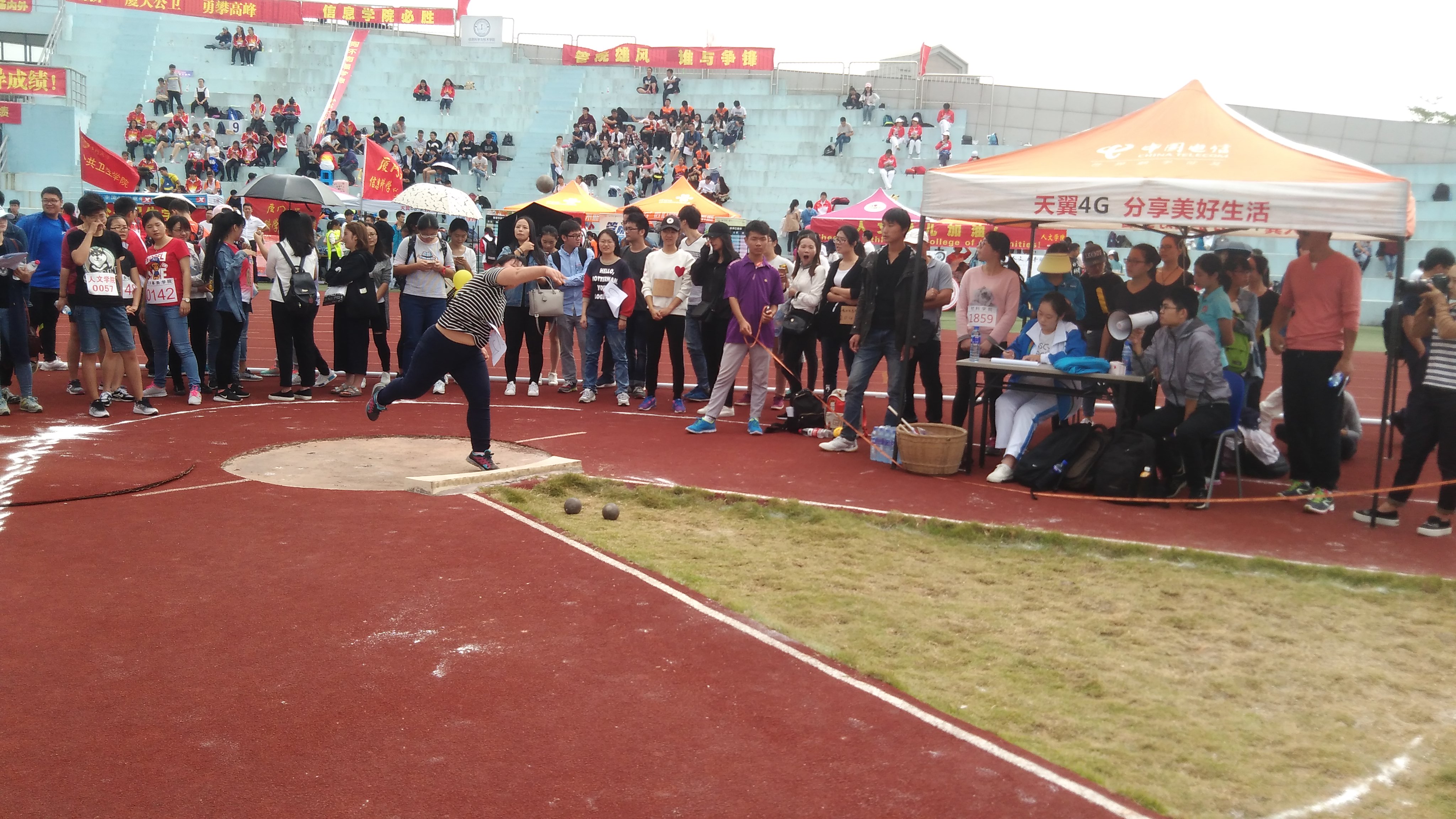 在女子铅球项目中,2013级本科生韩雯以8.15m的优异成绩蝉联冠军,为我院赢得了本届运动会中唯一的一枚金牌!这也是她本人连续第三年获得女子铅球项目的冠军。一同出战的王孙钰同学以2.81m位列第45名。