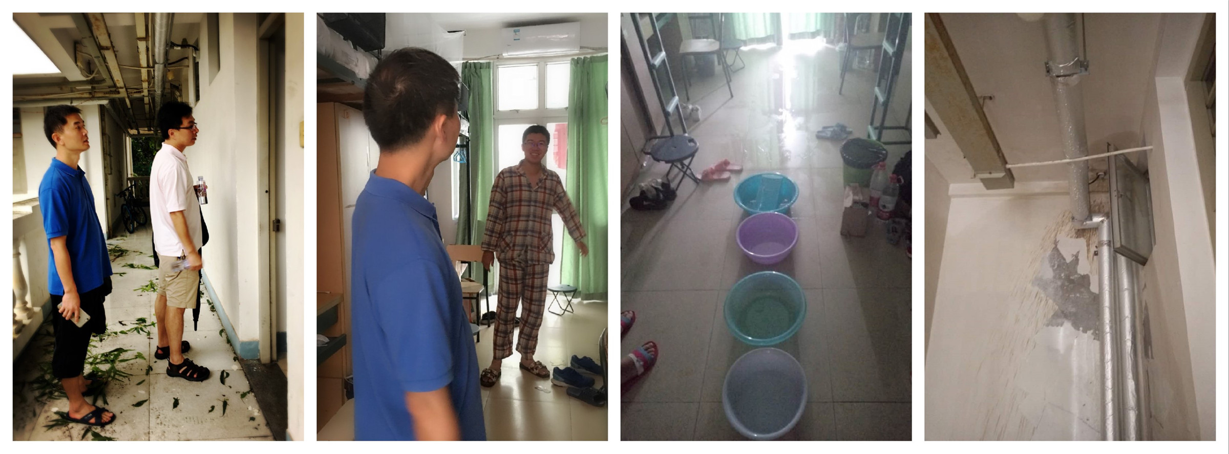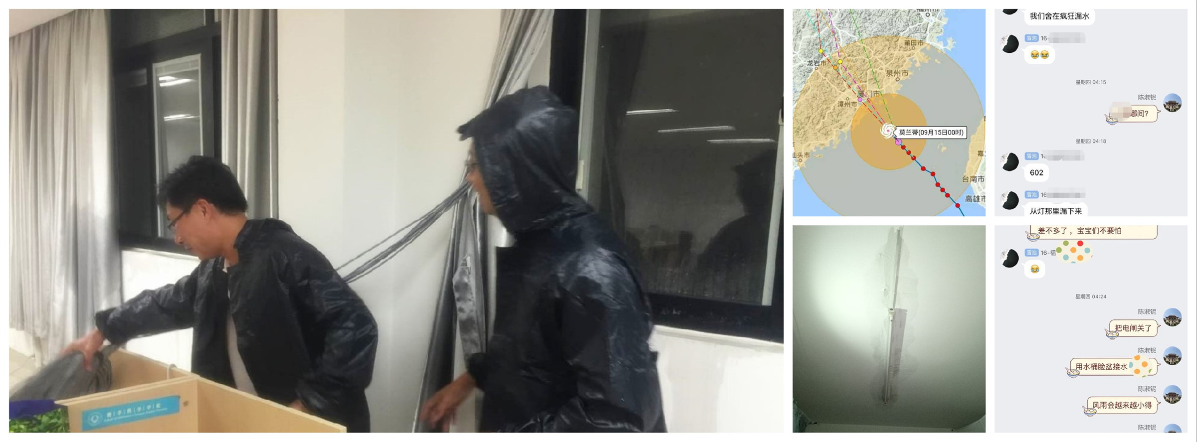 2016级新生第一次遭遇台风,辅导员不断安抚学生并积极采取自救措施。