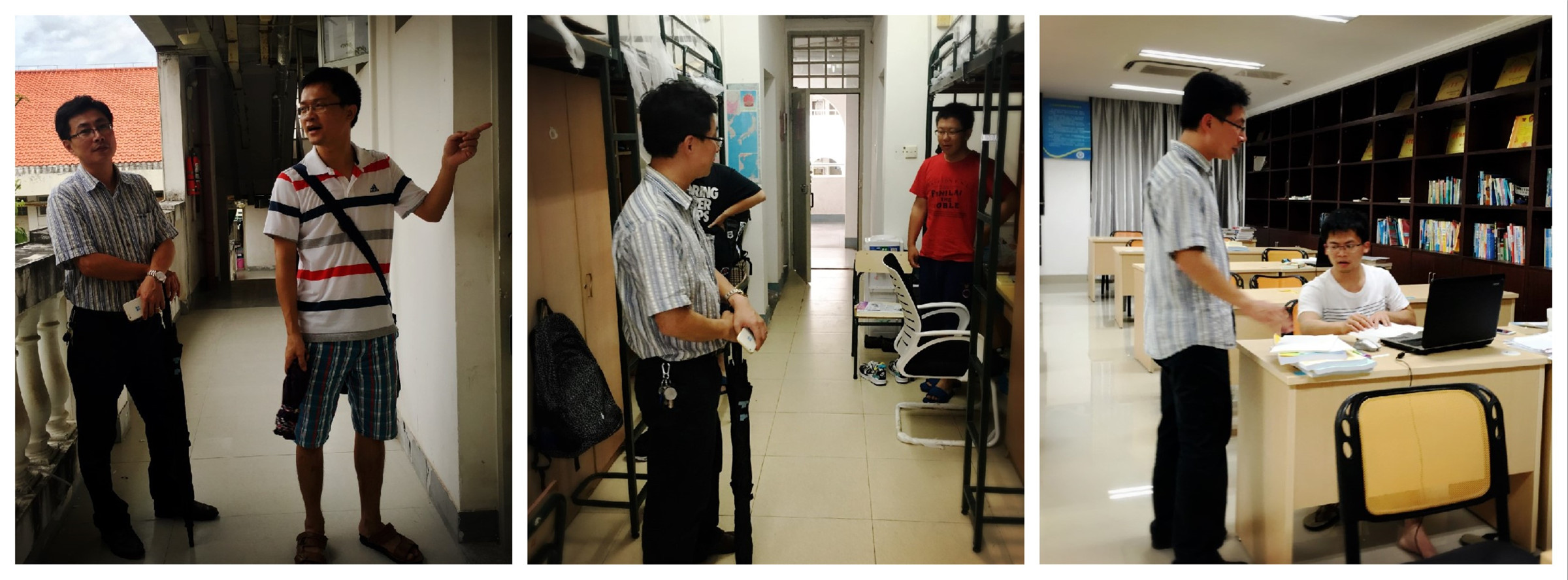 15日清晨,院党委书记、副书记和辅导员走访学生宿舍,看望慰问留校学生、检查宿舍受灾情况并向学生送上节日祝福。
