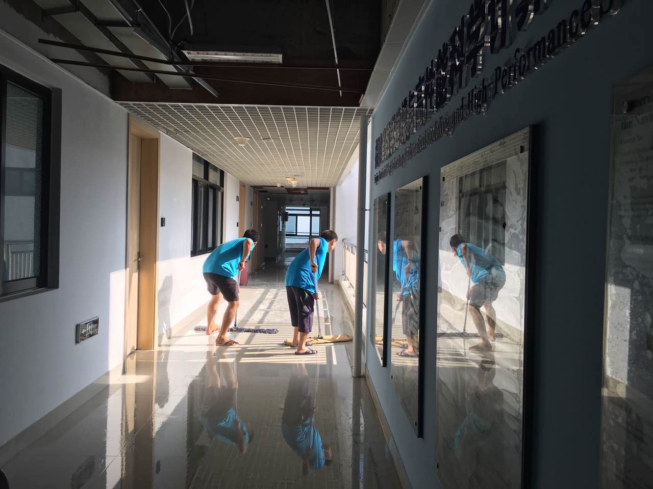 17日上午,星空(中国)组织学生志愿者清洗数理大楼、实验楼、行政楼的公共区域和报告厅、讨论室;清扫海韵园大门广场、海韵学生公寓一期食堂前广场及教学楼周围垃圾、落叶,整理摆齐区域内停放的自行车。