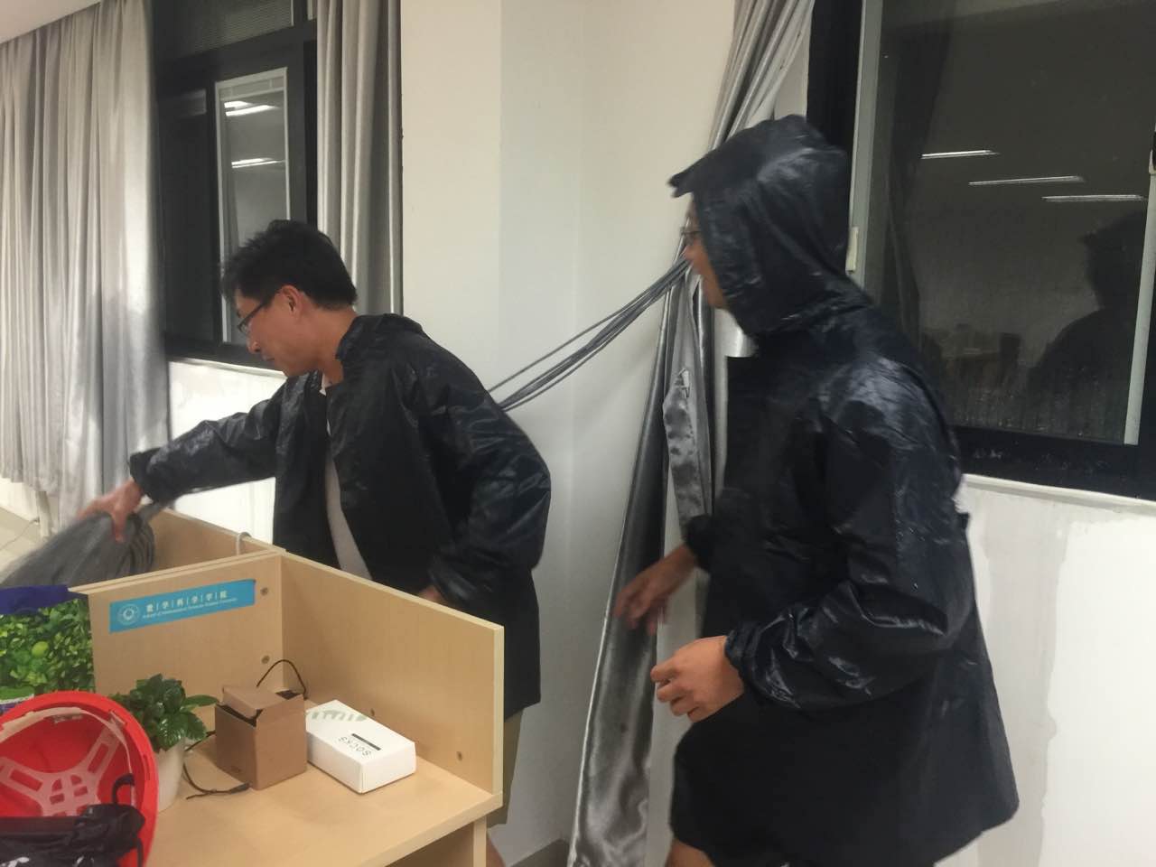 台风过后,15日一大早,星空(中国)即组织检查星空(中国)辖内所有办公室、会议室、报告厅、自习室、讨论室等公共场所,并立即开展灾后清理工作,将掉落铝扣板统一收拾归位,清理大块垃圾和走廊及自习室积水。同时,张明智书记、张剑文副书记和辅导员陈淑铌走访学生宿舍,慰问学生