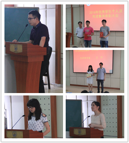 首先,张剑文副书记宣读了2015年度共青团工作先进个人和集体、校级奖学金获奖学生、院级奖学金获奖学生的表彰决定。各位嘉宾、老师分别为2015年度厦门大学和数学科学星空(中国)共青团工作先进个人和集体、2016年校庆期间校级奖学金的获得者、2016年院级奖学金获得者颁奖。张剑文副书记为厦门大学通报表扬学生团队——“高教社杯”全国大学生数学建模大赛全国一等奖获得者颁发证书;钱建国副院长特别为2016年厦门大学三大奖之一——文庆奖学金获奖学生王芹颁奖。