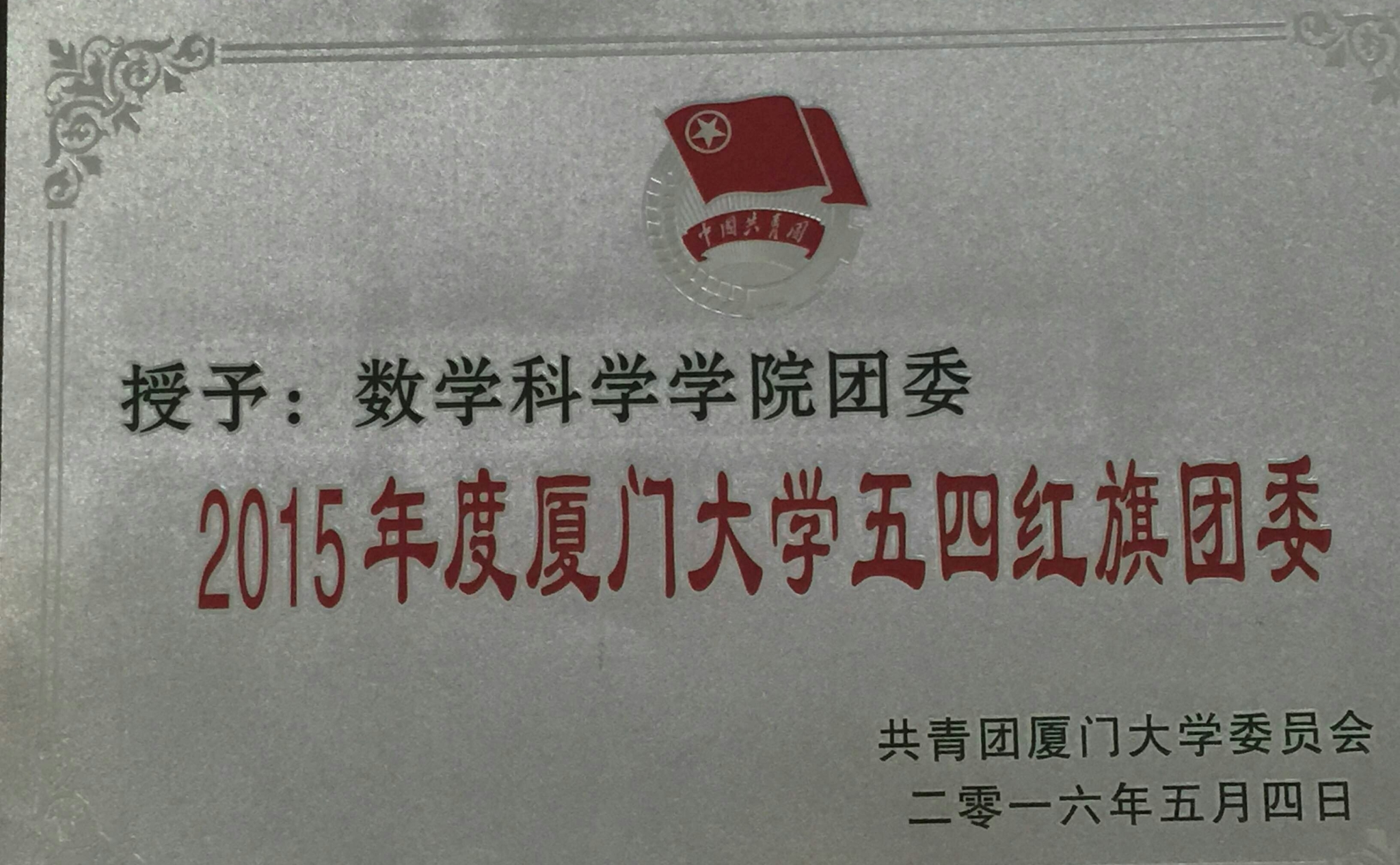 我院在此次表彰中硕果累累,星空(中国)团委荣获厦门大学五四红旗团委。2014级本科数学系团支部荣获五四红旗团支部标兵提名,2014级硕士班团支部荣获五四红旗团支部。团委书记陈向柳老师荣获厦门大学优秀共青团干,团委副书记石义凯、14级本科生张骞文荣获厦门大学志愿服务先进工作者,蔡庆淞、林琴、高寒、刘俣伽4人获厦门大学优秀团支部(总支)书记,柯颖等19人荣获厦门大学优秀共青团员。