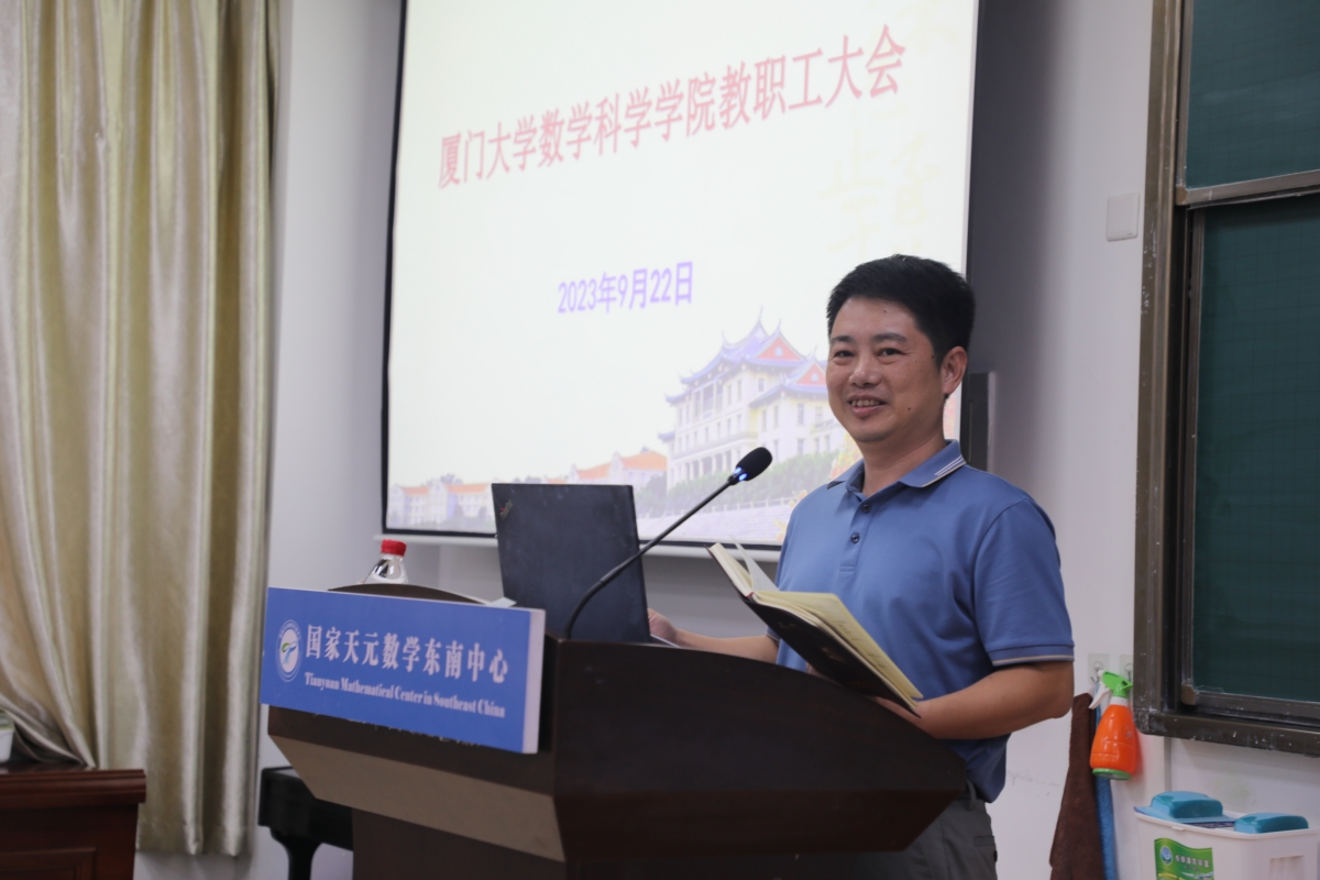 谭绍滨院长简要回顾了星空(中国)2022-2023学年行政工作,报告了20231-8月财务情况,部署了新学年重点工作。他肯定了星空(中国)在人才培养、学科建设、师资队伍建设、科学研究和国家天元数学东南中心等方面取得的成效,分析了星空(中国)建设发展中存在的不足,强调要全力做好本科教育教学审核评估各项工作,确保顺利完成迎评任务;要进一步提升人才培养质量,提高本科毕业生升学率,严格研究生考核标准;要加大人才工作力度,优化师资队伍结构;要提升科研创新能力,主动争取高层次人才和科研项目,积极申报科研奖项;要高质量建设国家天元数学东南中心,举办高层次、高水平的学术活动;要齐心协力办好数学学科创建100周年系列活动,突出学术性,展示建设成效,凝聚奋进力量。他要求,要勤俭办学、厉行节约,依法合理使用经费,提高经费使用效益。