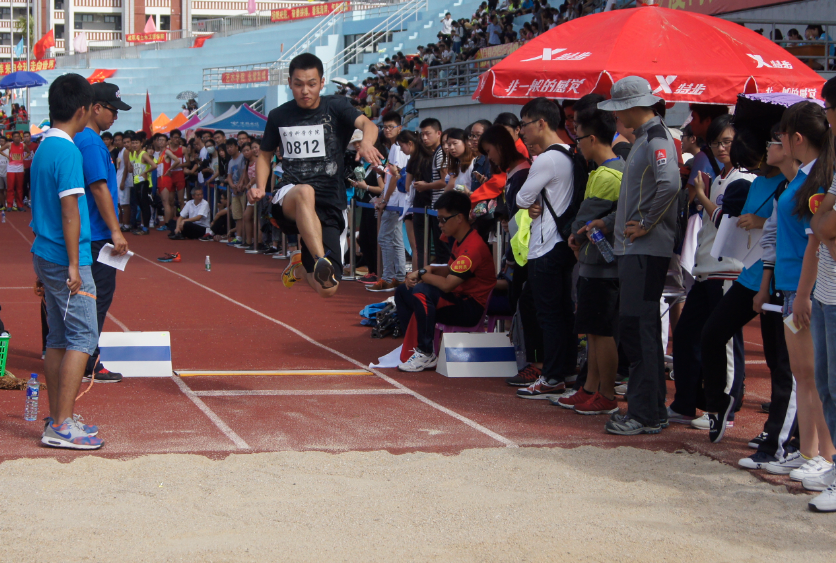 男子跳远比赛中,15级陈义和王子扬以5.16m和4.87m分位列第13名和25名。