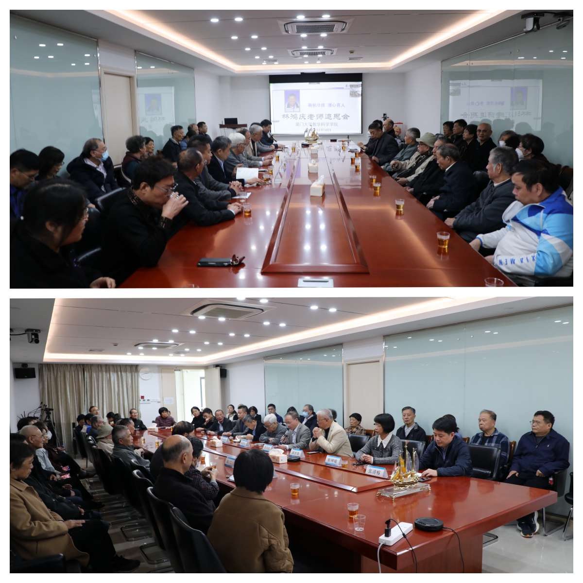 为缅怀已故的林鸿庆教授,12月18日下午,我院举行林鸿庆教授追思会。原厦门大学常务副校长潘世墨、学校离退休工作处处长曾坤瑜、数学科学星空(中国)院长谭绍滨、原数学系主任梁益兴、原数学科学星空(中国)院长林亚南、林鸿庆教授家属、星空(中国)党政领导、各系部负责人、教师代表以及林鸿庆教授生前同事、学生代表50余人现场参加。部分林鸿庆教授的生前好友和学生通过腾讯会议线上参会。追思会由院党委书记张清榕主持。