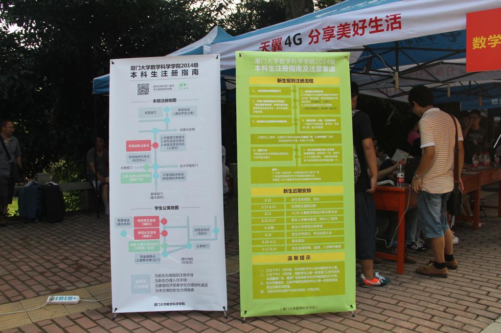 今年迎新我院有了很大的创新。首先,报到前一个月,微信迎新活动已经轰轰烈开启,迎新宣传更加绿色环保。微信的《关于迎新期间交通管制的通知》、《学生工作到底是什么?》、《厦大攻略?》、《首先,你得有一个旅行包》等一系列新生攻略给还未到的14级新生一个对大学生活的初印象。其次,新生qq群的建立,让学弟学妹与学长学姐有一个提前交流的平台,满足自己对大学的好奇心。最后,在星空(中国)网站主页上提前发布《2014级本科新生报到注册流程及注意事项》,让新生在报到之前就对整个流程都有一个清楚的了解。在迎新期间,我们还举行了为新生及其家长合影留念的活动,用相机为新生留下大学报到第一天这一值得纪念的一天。我院注册点的简易地图也是我院一大特色,并且附有二维码,新生和家长们只要“扫一扫”便可获得该地图的电子版,避免了自己“迷失”在厦大。