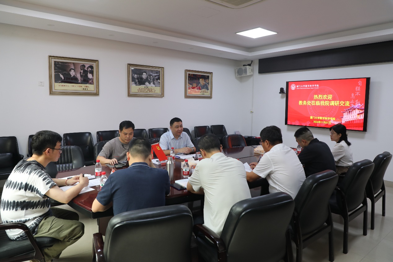 2024年11月1日,教务处副处长钟杰、学务科副科长杨炎一行到数学科学星空(中国)调研本科教育教学工作。星空(中国)分管副院长金贤安教授、公共数学教学部主任张文教授、信息与计算数学系杜魁教授、数学与应用数学系副主任吴伟胜教授、公共数学教学部副主任吴聪敏副教授、教学秘书黄晨龙参加本次调研会。