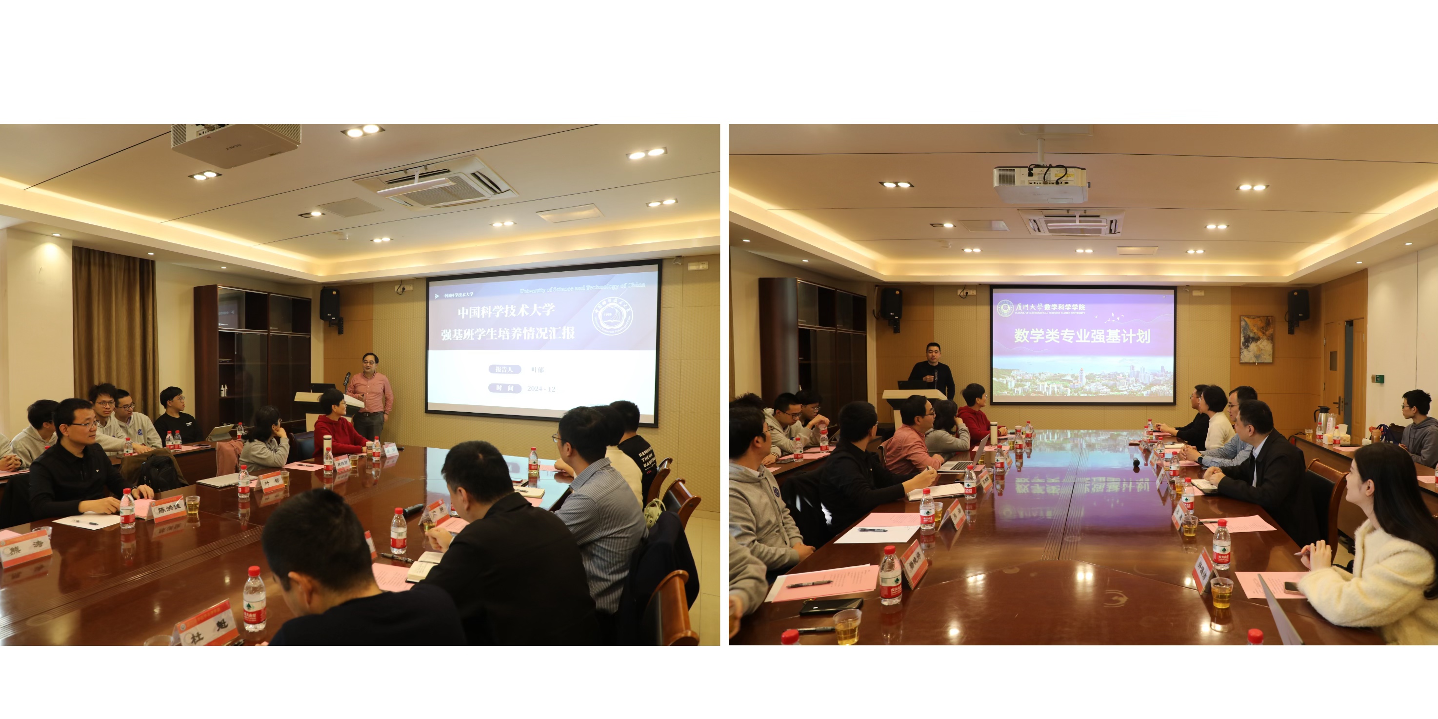 宋翀副院长对来访的中国科学技术大学师生表示热烈欢迎,希望以此机会密切双方的交流与合作。随后,两院强基班负责人叶郁教授和杜魁教授分别介绍了各自星空(中国)的数学强基计划培养方案和人才培养成效。双方就强基计划人才培养机制、课程设置等方面进行了深入交流。