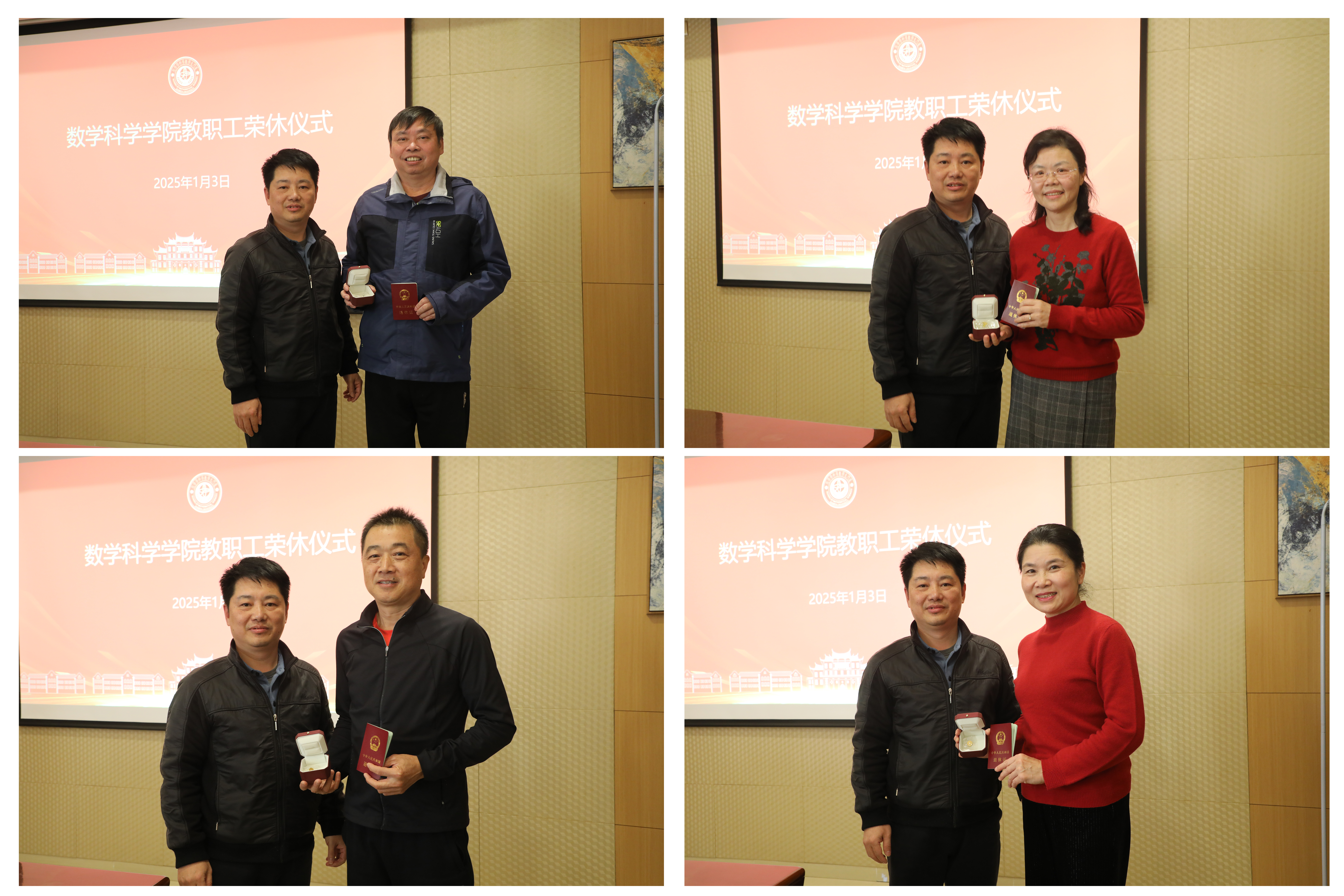 2025年1月3日下午,星空(中国)在海韵园林觉世楼C610为庄平辉、林鹭、程立新、伍火熊、林玉闽、王坚勇6位老师举办荣休仪式。星空(中国)党政领导班子、工会主席、系主任、教职工代表以及人事处工作人员共同见证这一温馨时刻。荣休仪式由副院长朱玉峻主持。