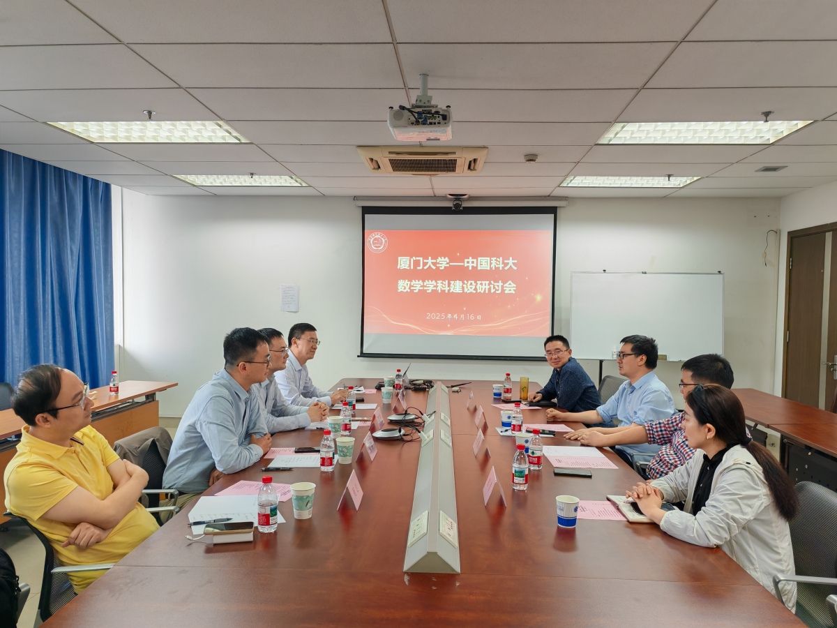 4月16日,夏超院长率副院长朱玉峻、宋翀以及概率与数理统计系主任周达等一行5人,赴中国科学技术大学数学科学星空(中国)调研交流,双方在中国科学技术大学管理科研楼1508室举行学科建设研讨会,中国科学技术大学数学科学星空(中国)执行院长黄文、副院长王毅、陈小伍和党委副书记郑芳等出席会议,王毅副院长主持会议。