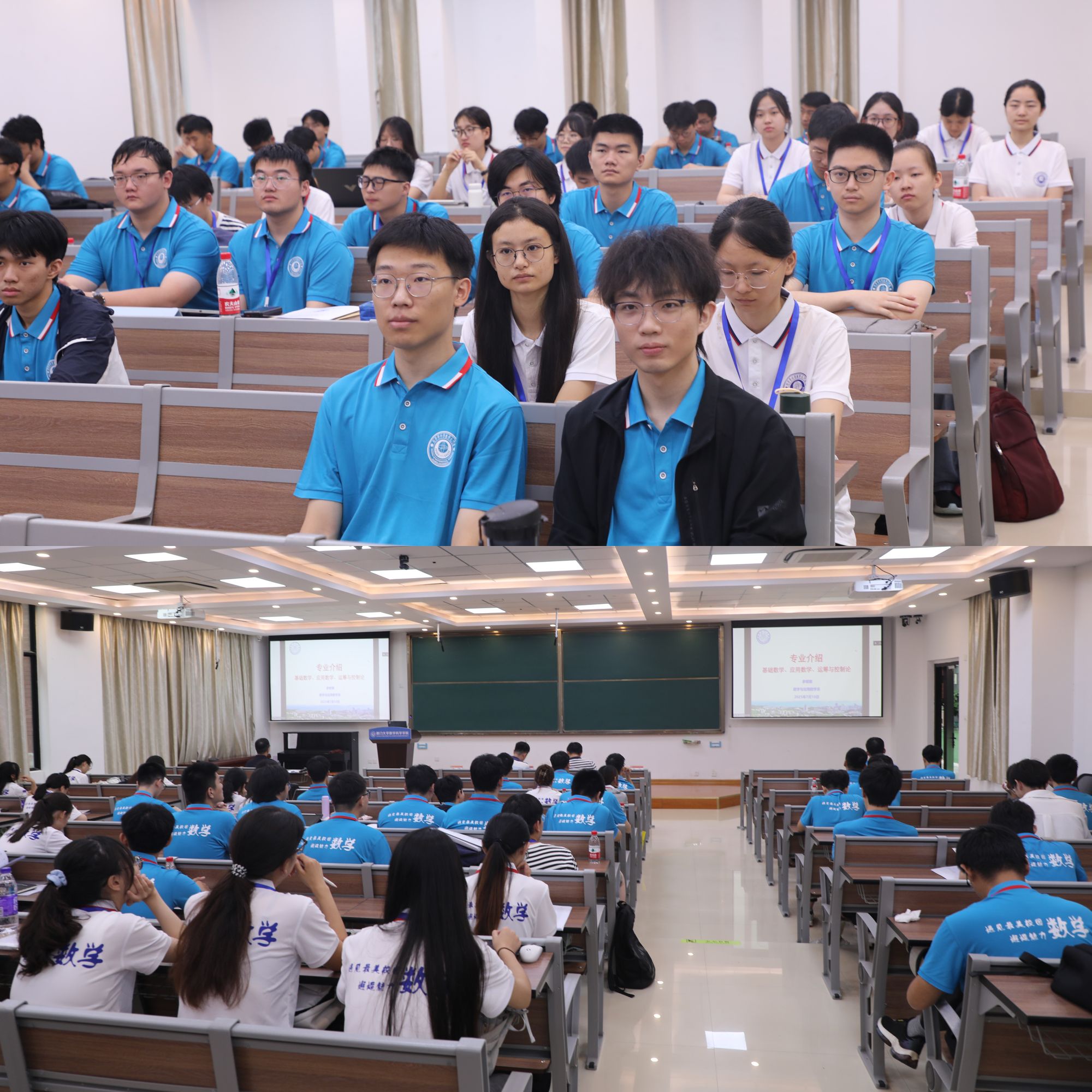 开幕式后,余铌娜教授、黄文教授、胡杰副教授依次向同学们详细介绍了数学与应用数学、信息与计算数学、概率论与数理统计系的专业特色、研究方向和导师队伍,并积极与同学们互动交流,让营员们对厦大数学学科的专业特色、发展方向以及前沿研究有了更为清晰的认识,为他们未来的专业选择与研究方向确定提供了重要参考。在随后的导师团队推介环节,有11位来自各个专业的研究生导师团队代表来到现场和同学们介绍团队的研究课题,分享自身的研究经验与心得,并与同学们进行了互动交流。
