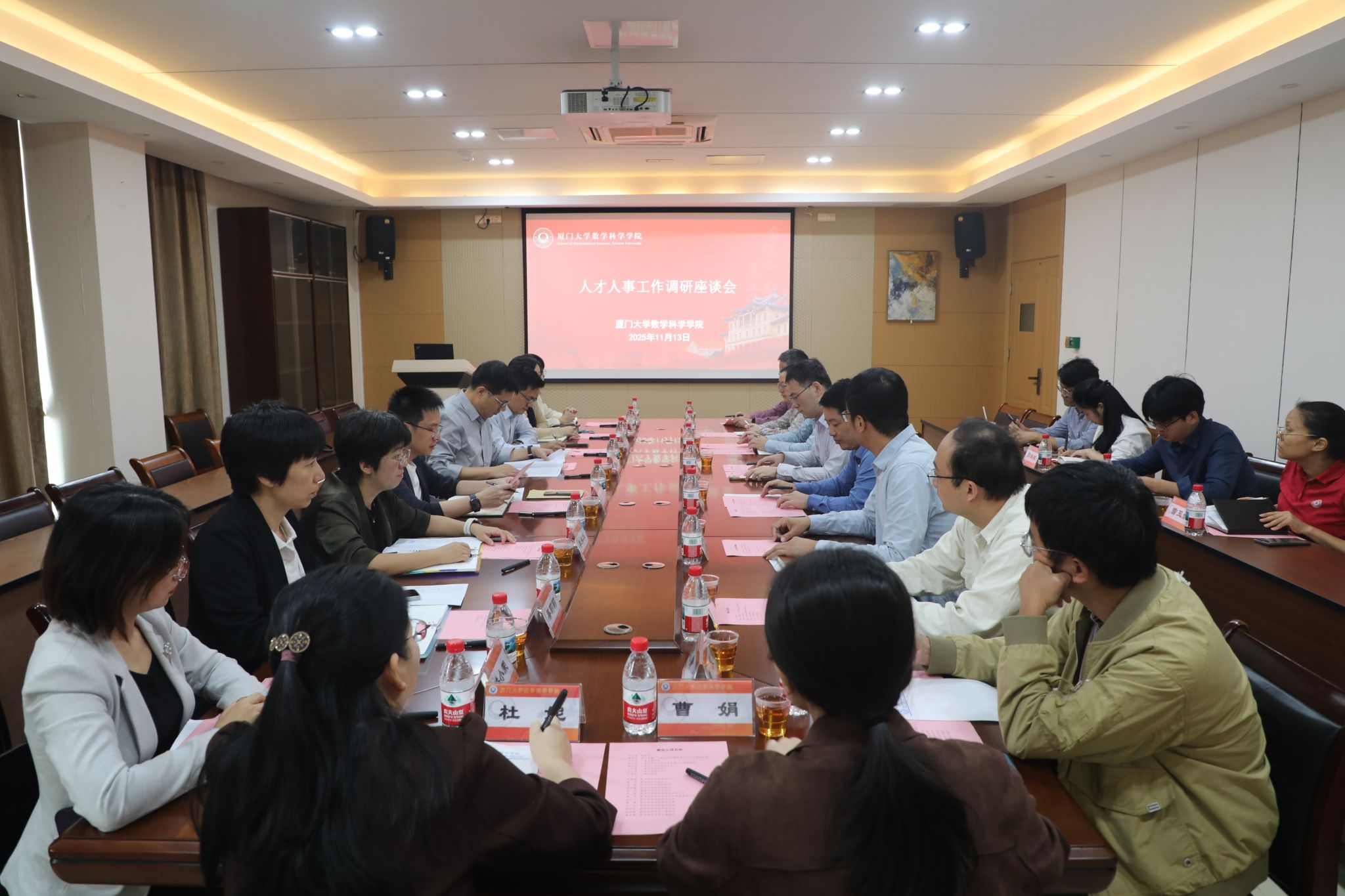 11月13日上午,史大林副校长带队赴数学科学星空(中国),就人才人事工作进行专项调研。校长助理、人事处处长兼党委人才办公室副主任谢兆雄,人事处副处长李承华、柯自聪,干部保健办公室主任蔡莉莉等陪同调研。数学科学星空(中国)党委书记张清榕,院长夏超,副院长宋翀、陈黄鑫、周达,教授委员会主任,系主任,专任教师代表等参加调研会。调研会由宋翀主持。
