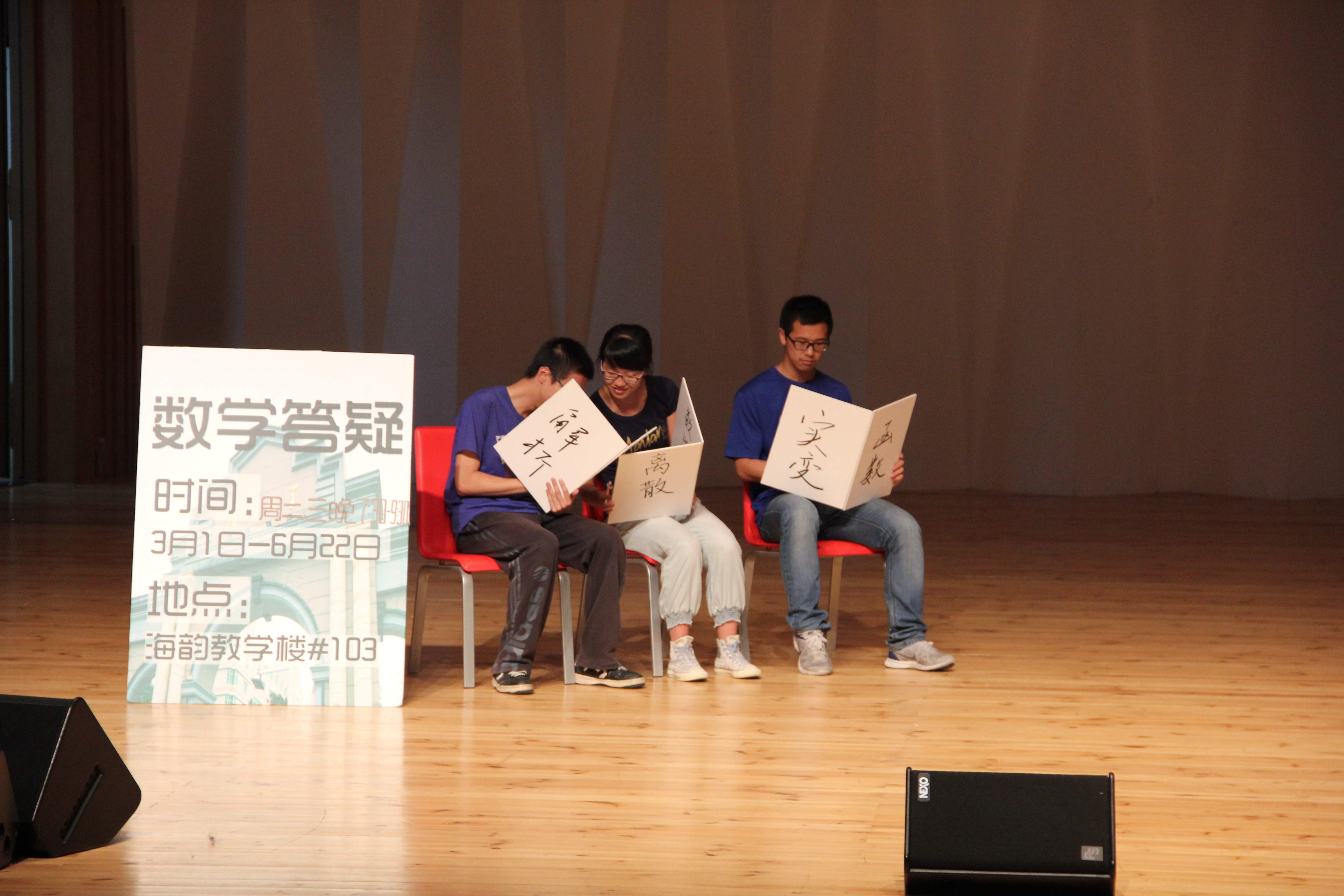 展示部分由我院2011级基地班团支部和经济星空(中国)团支部进行汇报演出。2011级基地班团支部舞台剧《青春》展示了支部的日常生活学习状况,体现了支部强大的凝聚力和勤奋上进的风貌。舞台剧真实地再现了同学们勤奋学习,相互激励的情景。沉迷游戏、学习困难的同学通过参加“阳光工程,学业帮扶”活动,由优秀同学帮助其提高学习成绩。自习过程中他们了解到“阳光工程,数学答疑”、“阳光行动,科技中学”志愿活动,立志发奋学习,争取学好数学加入志愿队伍。在学习之余,他们还加强体育锻炼,参加“阳光工程,健身计划”活动,将跳绳、长跑运动项目在舞台展示出来,表现出活泼阳光健康的形象,充满动感的舞蹈也让所有观众耳目一新,通过大家的努力,促使共同进步,这也体现着同学们团结互助、积极向上的精神面貌。伴着《真心英雄》的歌声,同学们心手相牵,大家齐喊“弘扬景润精神,再创数院辉煌”结束表演。