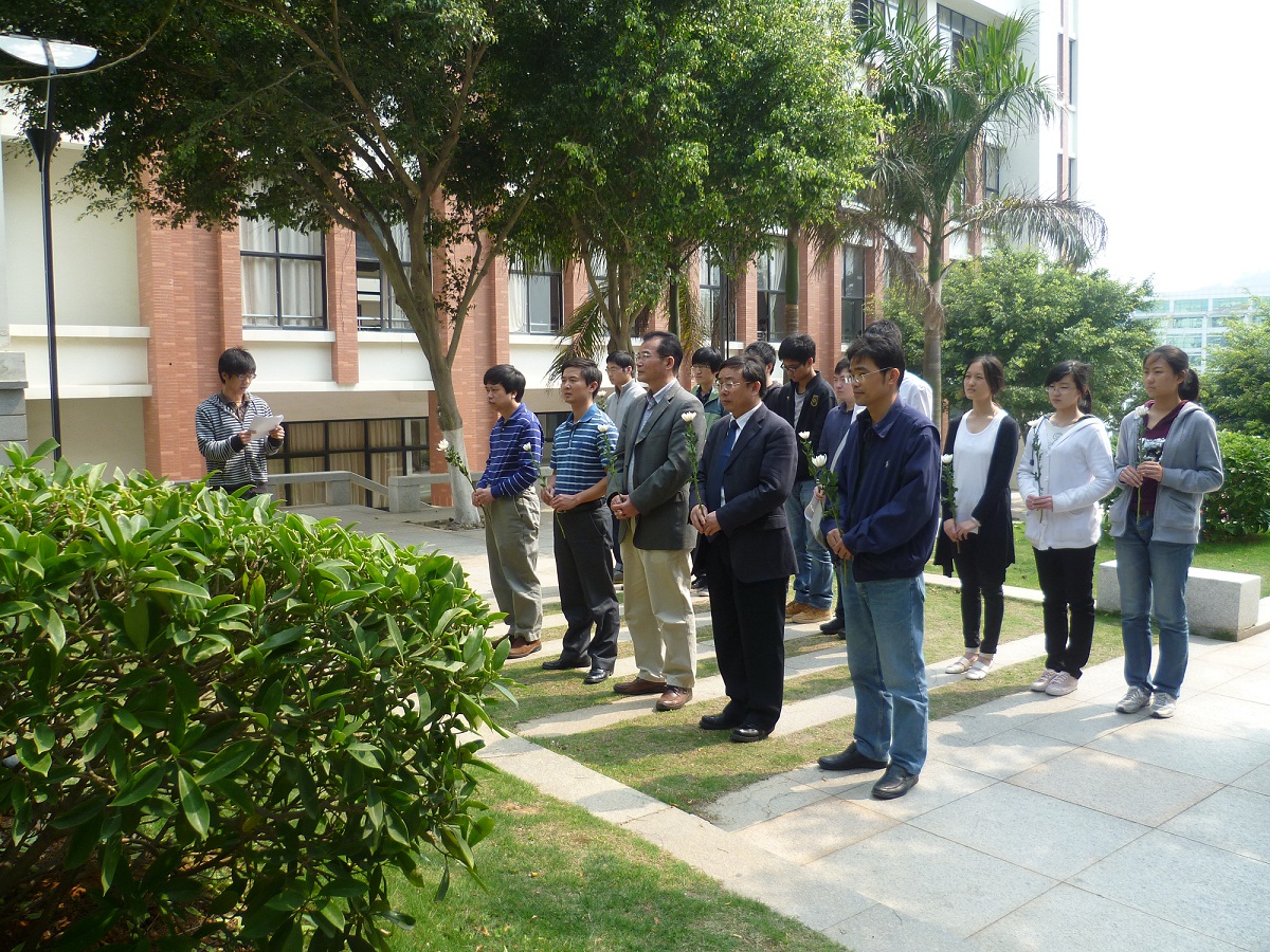 44日清明节上午10:00,我院师生代表齐聚海韵园陈景润先生塑像前,深切缅怀悼念陈景润前辈。星空(中国)党委张明智书记、谭忠副书记、程立新副院长、邱春晖副院长、钟春平教授和学生代表参加了祭扫仪式。