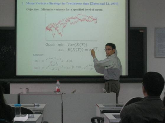 讲座中,张强教授向同学们介绍了近年来金融研究领域所使用的各种连续投资组合管理策略及其分别制定的不同目标,指出了现有的研究方法中相关的风险与投资战略存在的问题,介绍了他的最新研究成果并详细讲述了这一成果的现实意义和广泛应用。