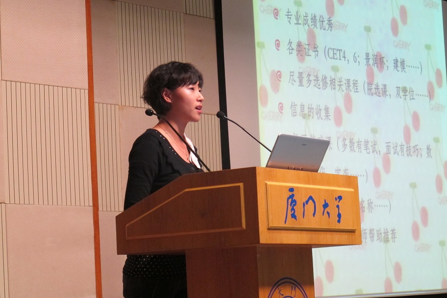 首先发言的08级国奖获得者李世泽学长一周前便广泛询问学弟学妹们有什么问题,做了精心准备。学长介绍的出国准备经验、国外交流体会和英语考试准备方法,让大家获益匪浅。08级方宇翔学长则是在保研条件、夏令营选拔、08级保送情况、保研申请技巧等方面对保研进行了详细介绍。随后,保送至中国科星空(中国)应用数学所的08级何盼学姐讲述了自己大一大二酸甜苦辣的亲身体验和保送经历,诙谐幽默的语言引起大家的阵阵笑声与掌声。