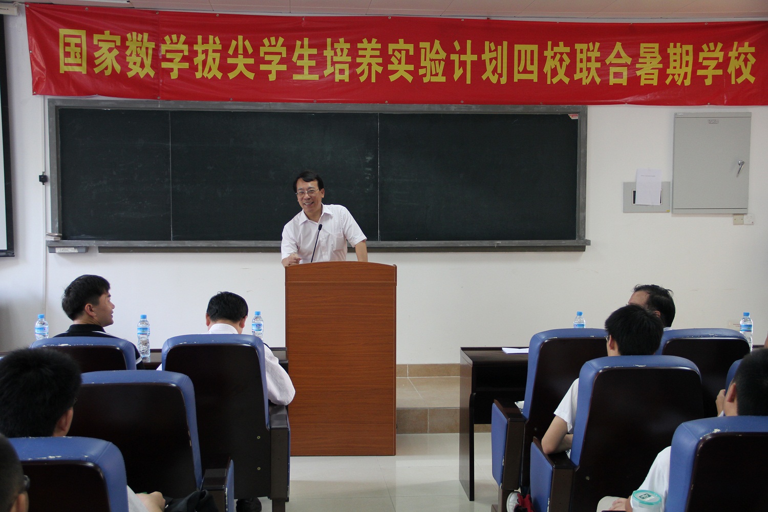 邬大光副校长在致辞中介绍了国家拔尖学生培养实验计划的基本情况,强调国家对基础学科拔尖人才培养的重视,并结合国内外基础教育的对比现状,对本次暑期学校的学员提出希望。他希望同学们在扎实的数学功底的基础上,向国外的先进教育理念学习,培养创新能力,争取成为数学学科出类拔萃的人才。厦门大学对办好这期暑期学校高度重视,专门邀请了国内外多位知名专家学者前来讲课,安排了老师进行辅导答疑,希望同学们珍惜机会,通过暑期学校的学习能够收获更多知识,满载而归。他还希望同学们通过暑期学校的学习,认识和了解厦门大学,今后有机会选择到厦大学习、工作。