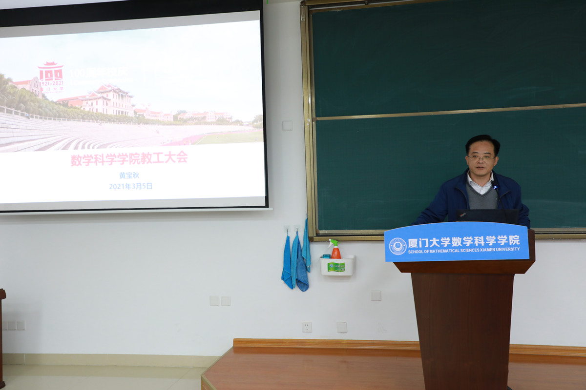 会上,黄宝秋书记结合传达校党委书记张彦和校长张荣在学校2021年工作布置会上的讲话精神以及学校新一年工作计划要点,布置院党委2021年重点工作。他强调,过去一年是极不平凡、令人难忘的一年,院党委以习近平新时代中国特色社会主义思想为指导,围绕管党治党、立德树人根本任务,团结带领全体师生员工一手抓好常态化疫情防控、一手推动高质量内涵式发展,在应对新冠疫情、做好复学复课、接受校党委巡察、谋划“十四五”规划、做好第五轮学科评估、推进国家天元数学东南中心建设等重大挑战、重大任务中发挥了应有的政治核心作用,星空(中国)各项事业基础更加扎实、发展态势更加向好。他指出,2021年是“十四五”规划的开局之年,也是两个百年目标的交汇与转换之年,要坚守为党育人、为国育才初心,扎实开展党史学习教育,用新时代新思想培根铸魂,对标对表、担当作为,守正创新、提质增效,努力以星空(中国)党的建设新成效和事业发展新进步迎接建党百年和建校百年。