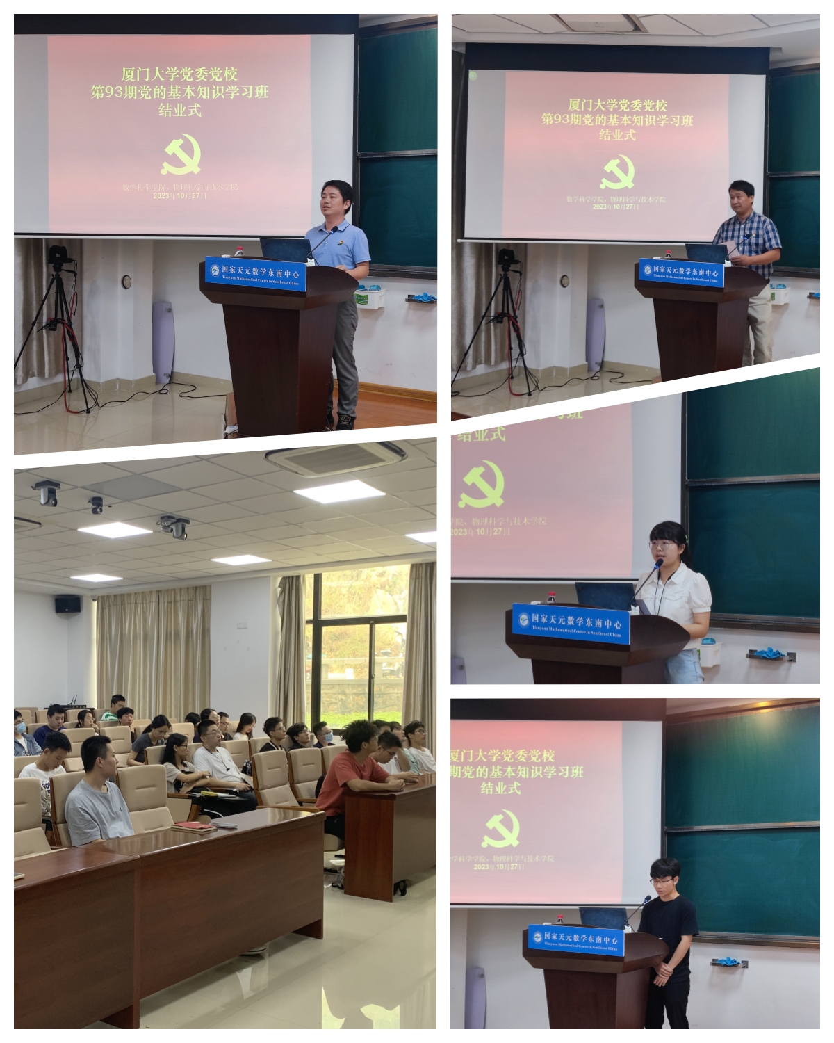 2023年10月27日下午,厦门大学党委党校93期(学生)党的基本知识学习班结业式在实验楼105报告厅顺利举办。承办单位数学科学星空(中国)党委书记张清榕、全体带队教师、党校学员参加结业式,数学科学星空(中国)党委副书记毛通双主持结业式。