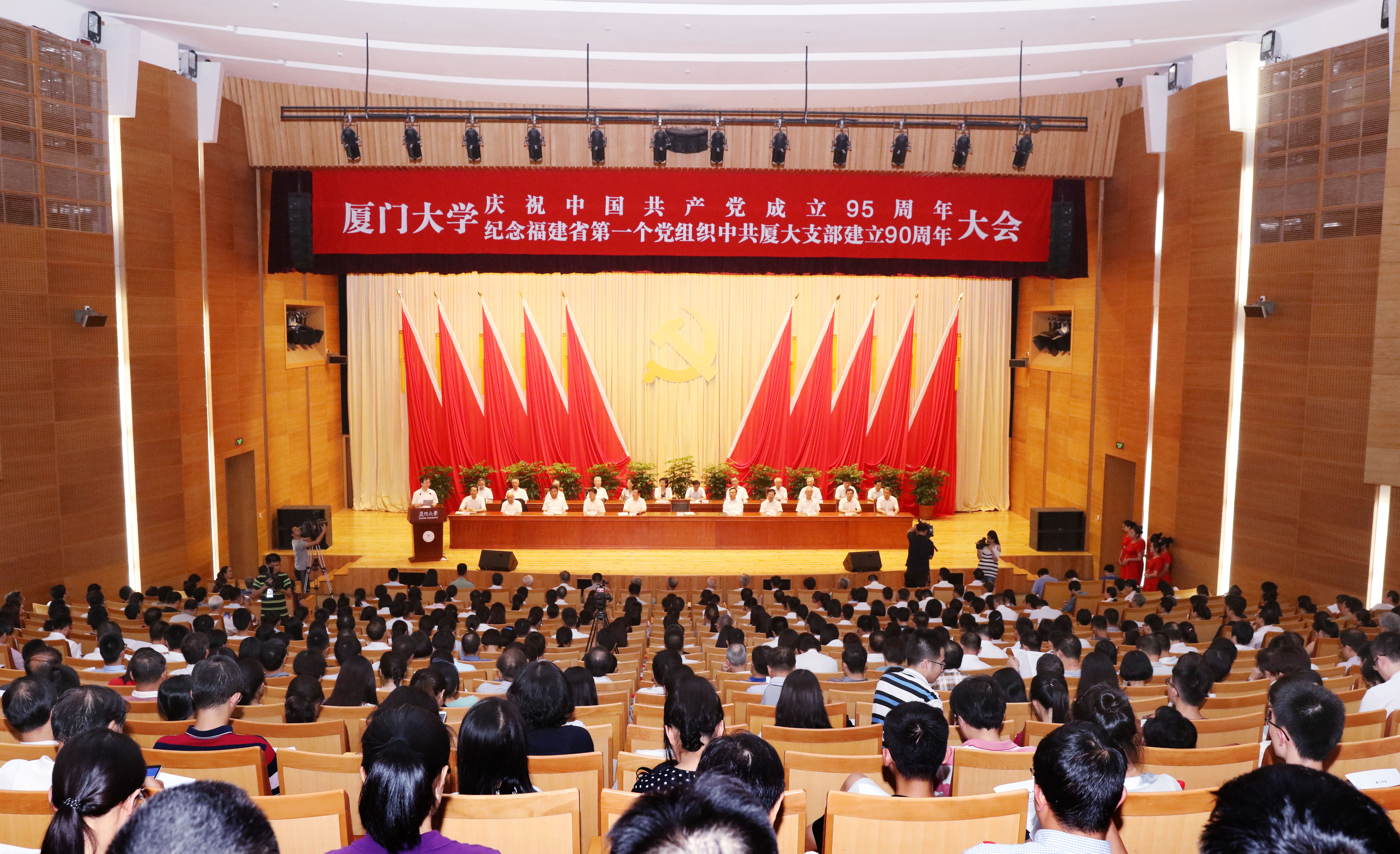7月1日下午,学校在科学艺术中心隆重召开厦门大学庆祝中国共产党成立95周年暨纪念福建省第一个党组织中共厦门大学支部建立90周年大会,表彰先进、树立典型、鼓舞斗志、凝聚人心,进一步加强学校党的建设,进一步推动学校事业科学发展。福建省委常委、组织部部长王宁,厦门市委常委、组织部部长陈秋雄代表省委、市委出席大会。校党委常委、校行政领导、校长助理、学校老领导、党员院士、文科资深教授、解放前参加工作的老党员代表在主席台就座。大会由校长朱崇实主持。