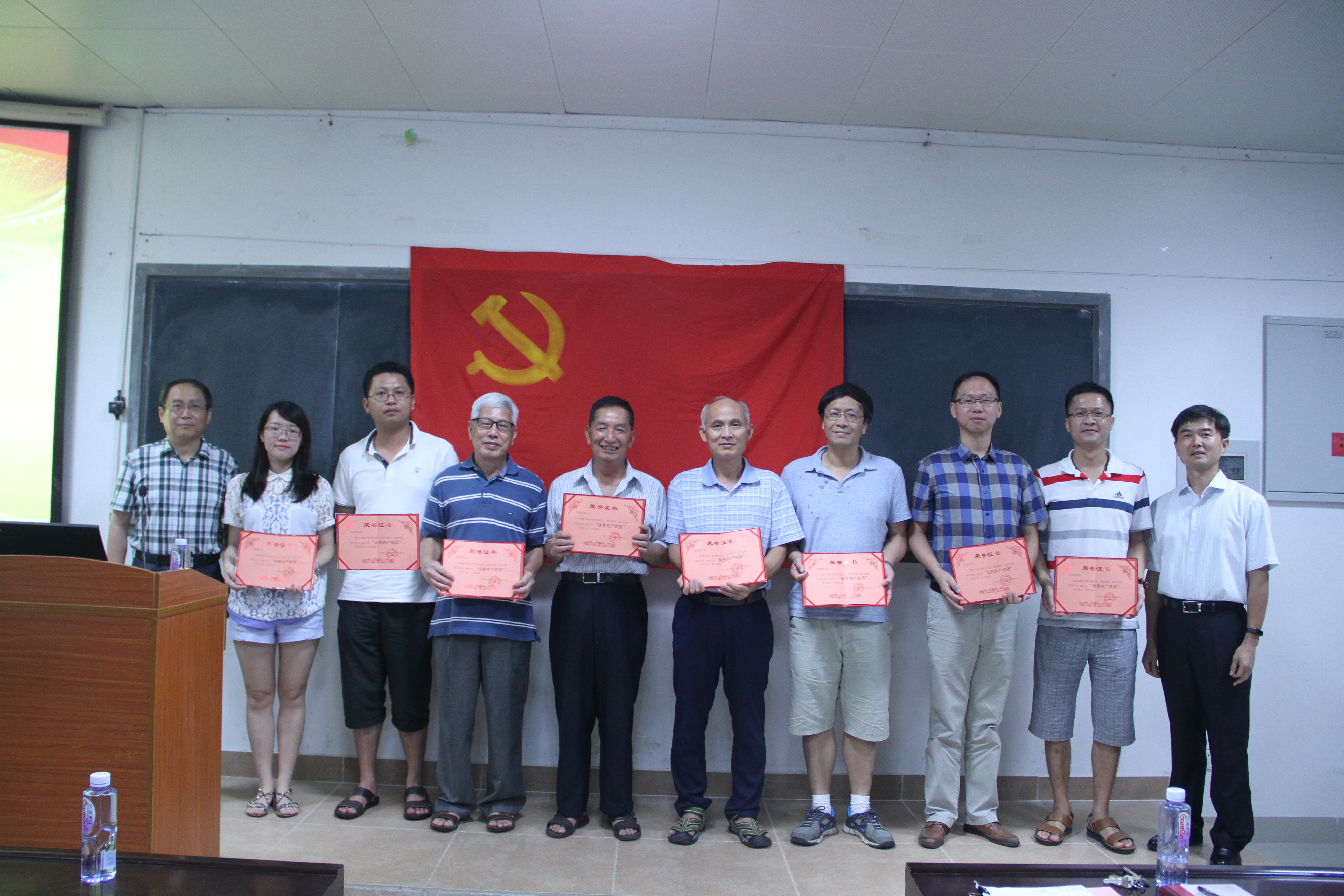 会议对2014至2016年度表现突出的党员进行了表彰,党委副书记张剑文宣读了表彰决定,决定授予24名党员“优秀共产党员”称号,院长林亚南、党委书记张明智共同为获奖师生代表颁发荣誉证书。