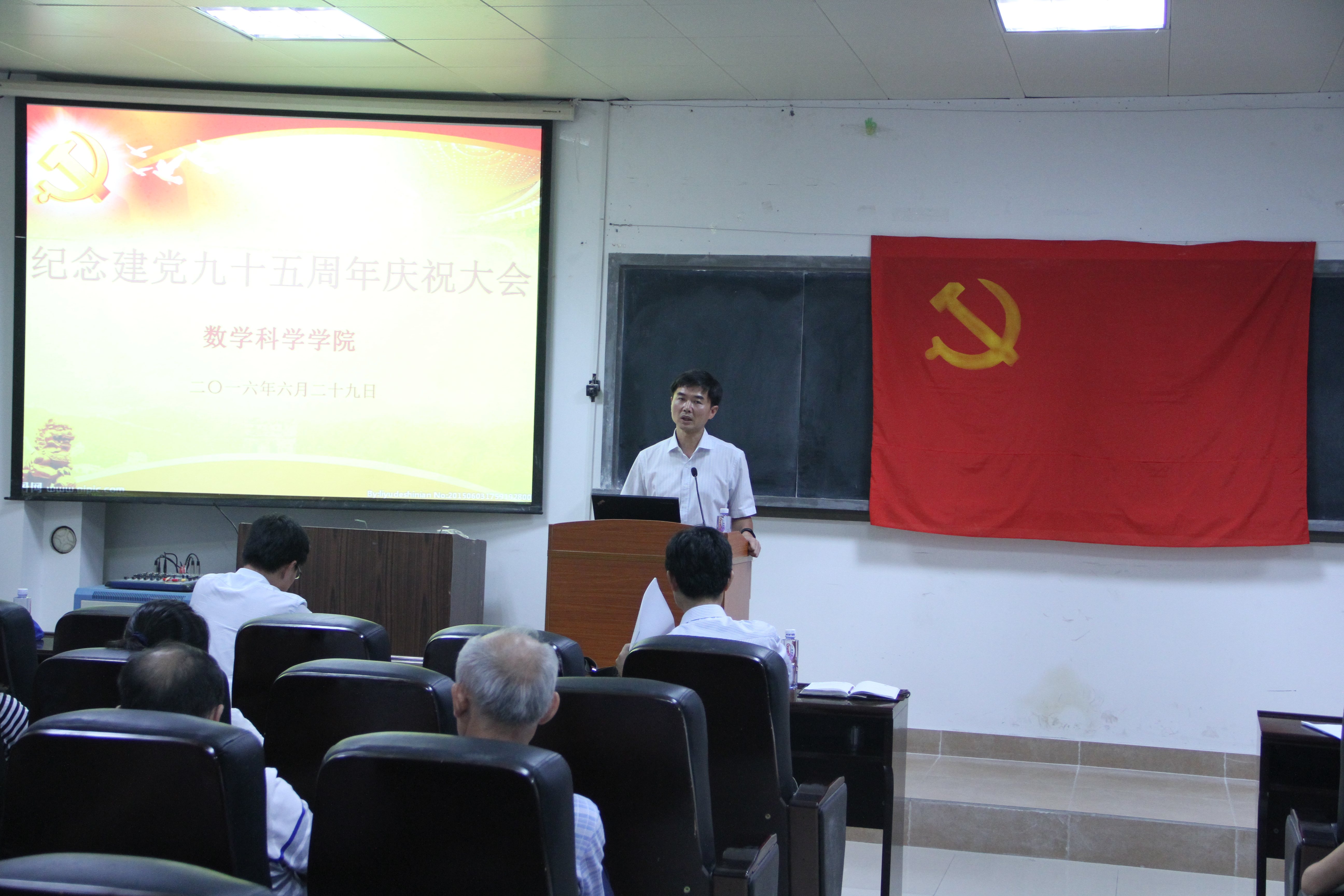 6月29日,院党委在实验楼105教室召开庆祝建党九十五周年庆祝大会,院党委委员、全体师生党员参加会议,会议由党委副书记张剑文主持。