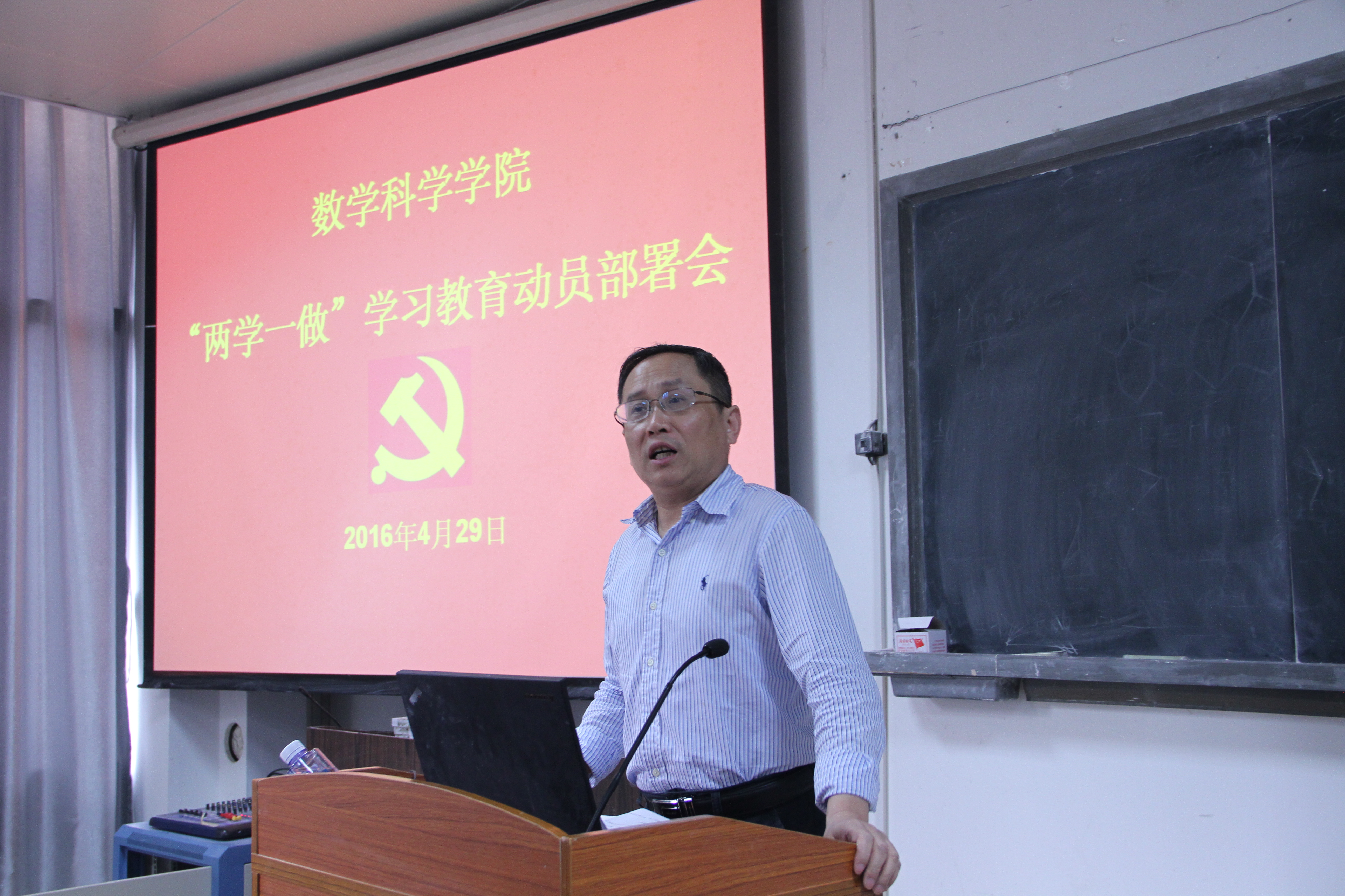 2016年4月29日下午,数学科学星空(中国)在实验楼105教室召开“两学一做”学习教育动员部署会。厦门大学“两学一做”学习教育第三督导组组长郑建华、副组长杨云良莅临指导,星空(中国)全体党委委员、支部委员、辅导员参加会议。会议由林亚南院长主持。