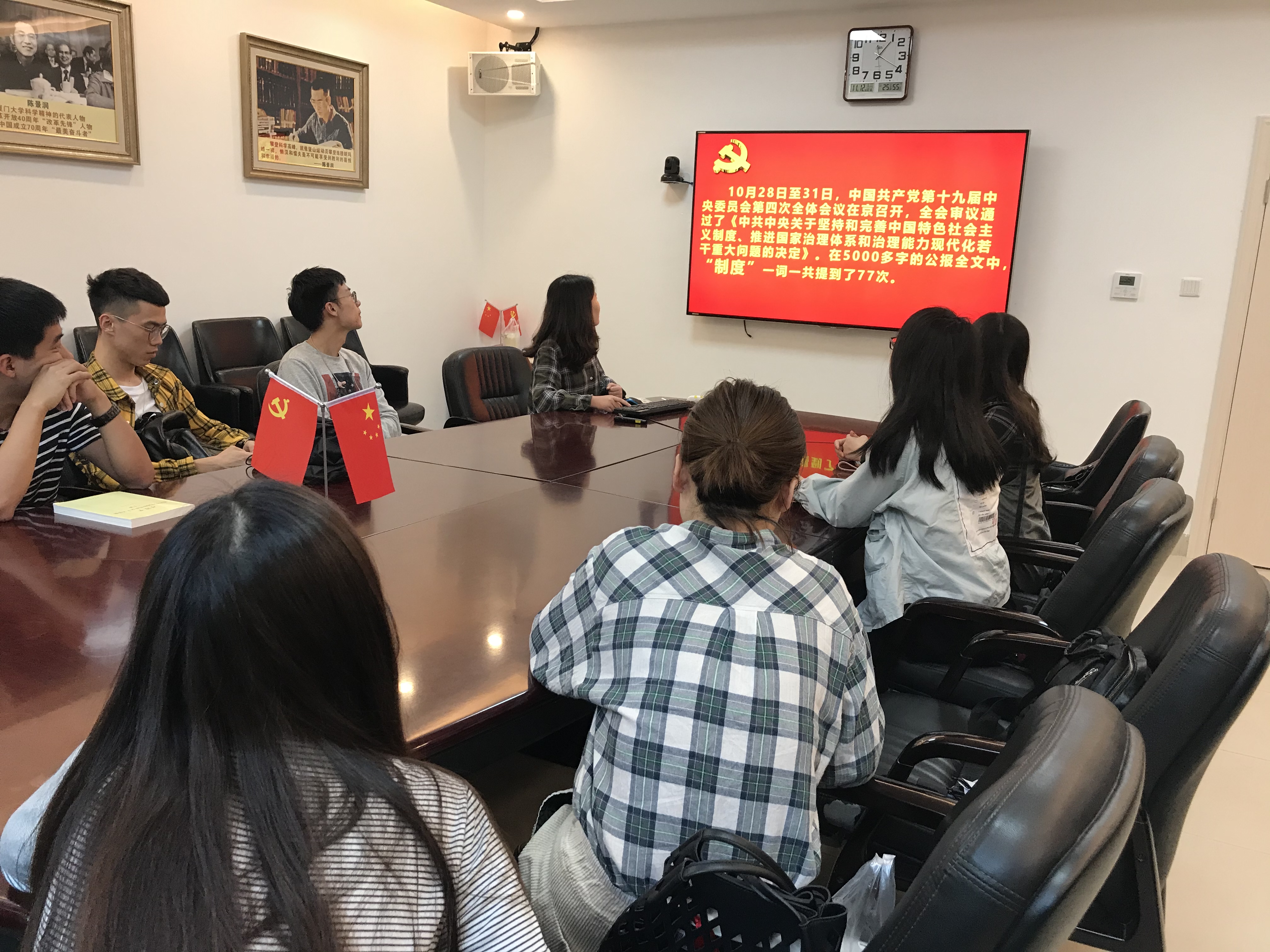 党课结束后,支部书记郑园带领大家围绕十九届四中全会精神进行了学习。本次全会核心关键词为“制度”,支部党员就其中关于中国特色社会主义制度和国家治理体系作出的重要判断进行深入领会,通过对中国特色社会主义制度和国家治理体系的13个显著优势的全面把握,大家充分认识到中国特色社会主义制度的优越性,坚定了制度自信。最后,支部党员认真通读了《中共中央关于坚持和完善中国特色社会主义制度、推进国家治理体系和治理能力现代化若干重大问题的决定》,强化建设数学强国、推进国家治理体系和治理能力现代化的政治自觉和行动自觉。