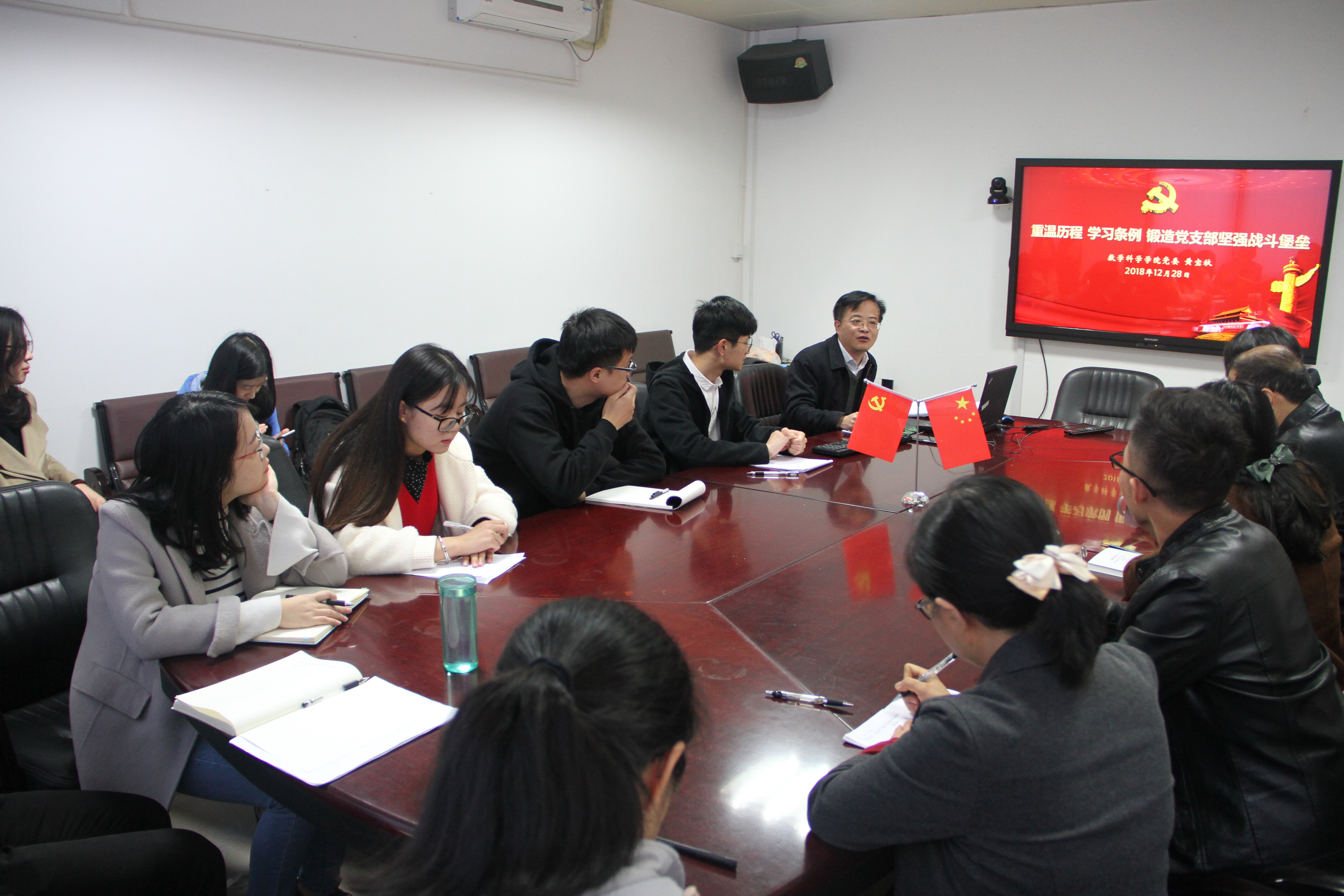 为学习贯彻《中国共产党支部工作条例(试行)》(以下简称《条例》),推动党支部标准化、规范化建设,提升党支部政治功能,增强党支部组织力,推动全面从严治党向支部延伸,按照院党委有关安排,12月28日,院党委书记黄宝秋在海韵行政楼B313会议室上《重温历程 学习条例 锻造党支部坚强战斗堡垒》主题党课,全院师生党支部书记、行政支部党员听取了党课。