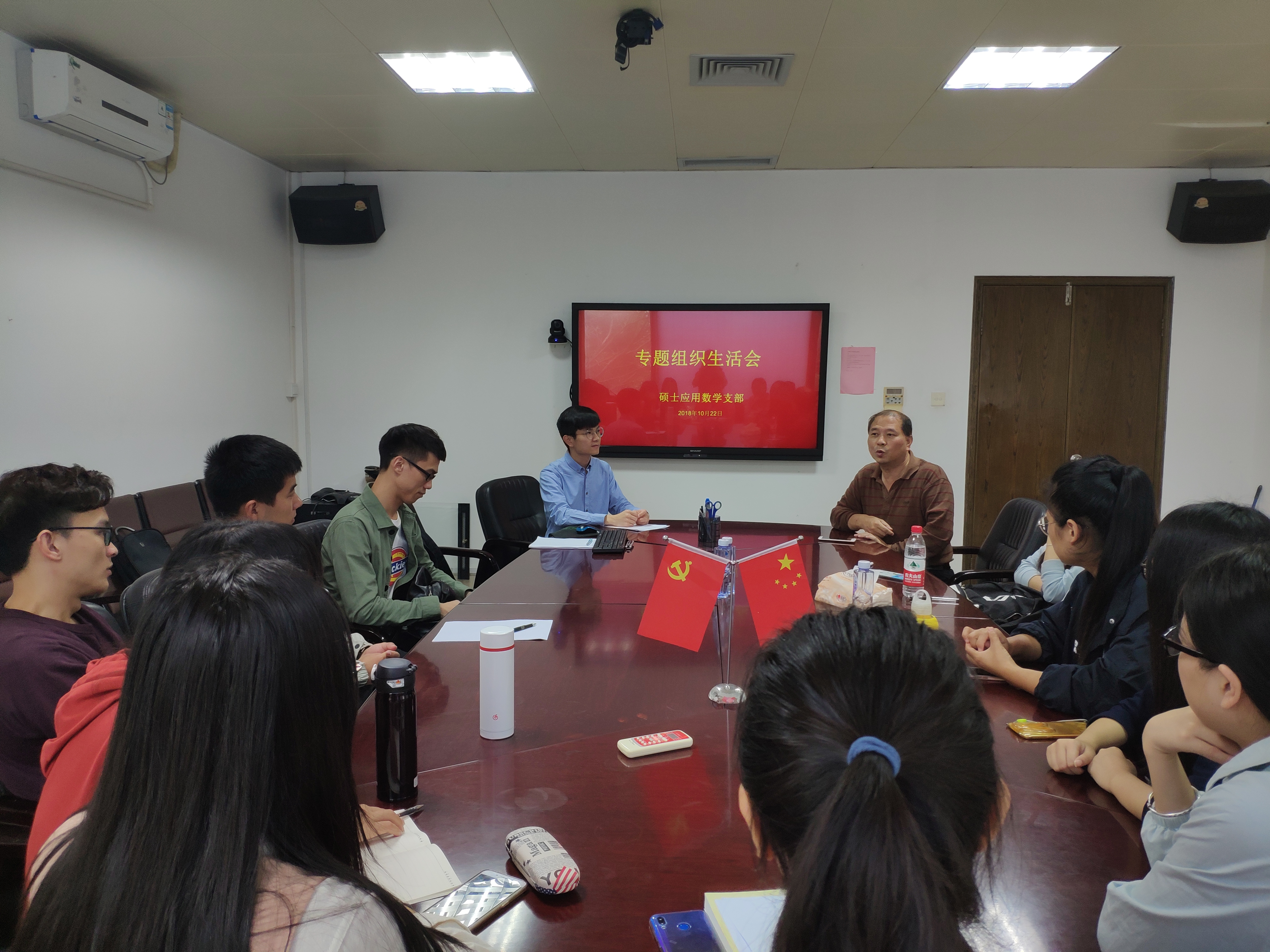 2018年10月22日硕士应用数学党支部于行政楼B313召开专题组织生活会,党委副书记陈国强同志全程参加会议。