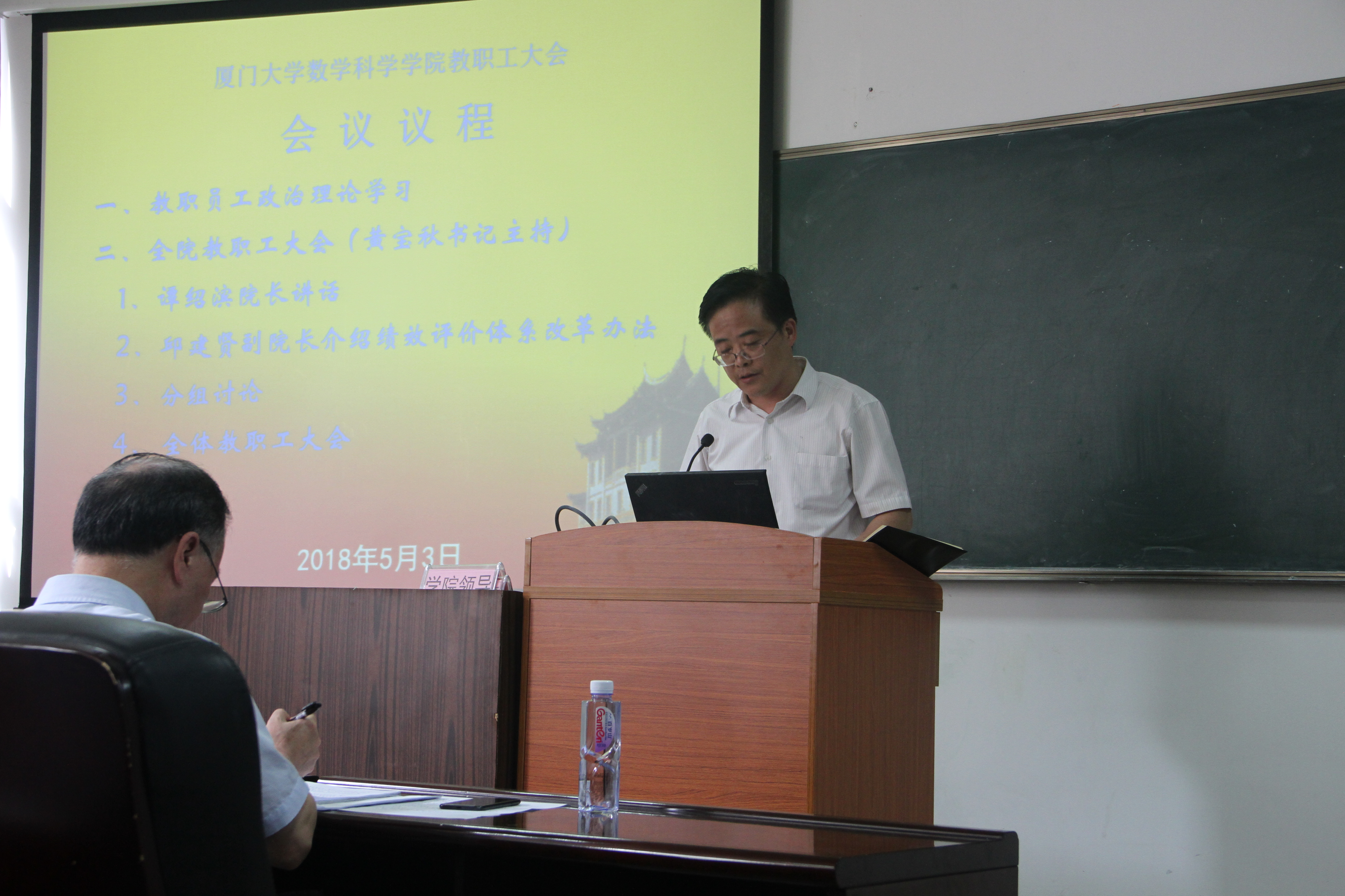 2018年5月3日,星空(中国)在实验楼105教室召开政治理论学习大会。星空(中国)党政班子、全体教职工参加会议,党委书记黄宝秋主持会议。