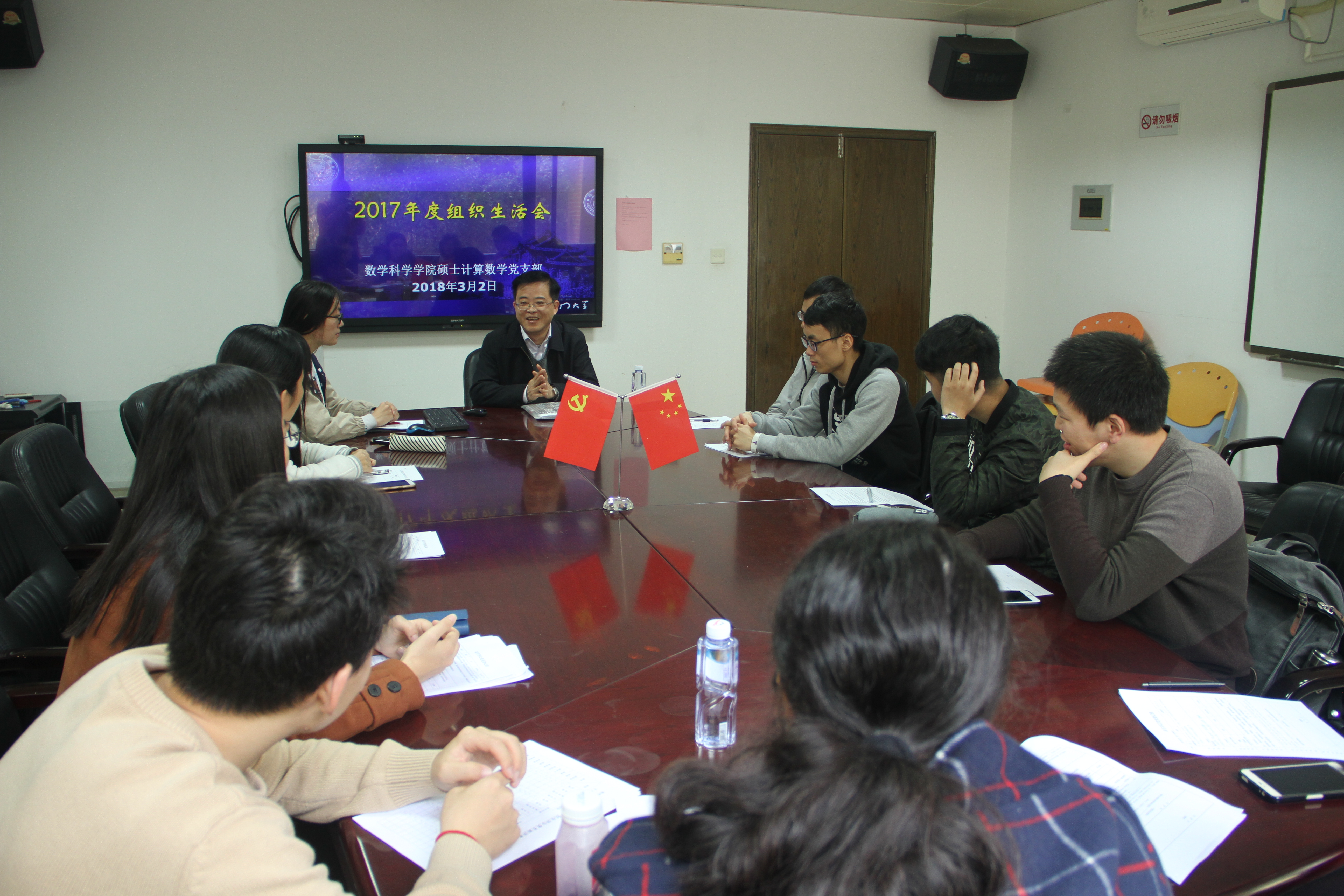 2018年3月2日上午,硕士计算数学党支部在行政楼313会议室召开2017年度组织生活会,开展党员民主评议。星空(中国)党委书记黄宝秋作为支部联系领导出席会议并讲话,会议由支部书记韩萌主持。