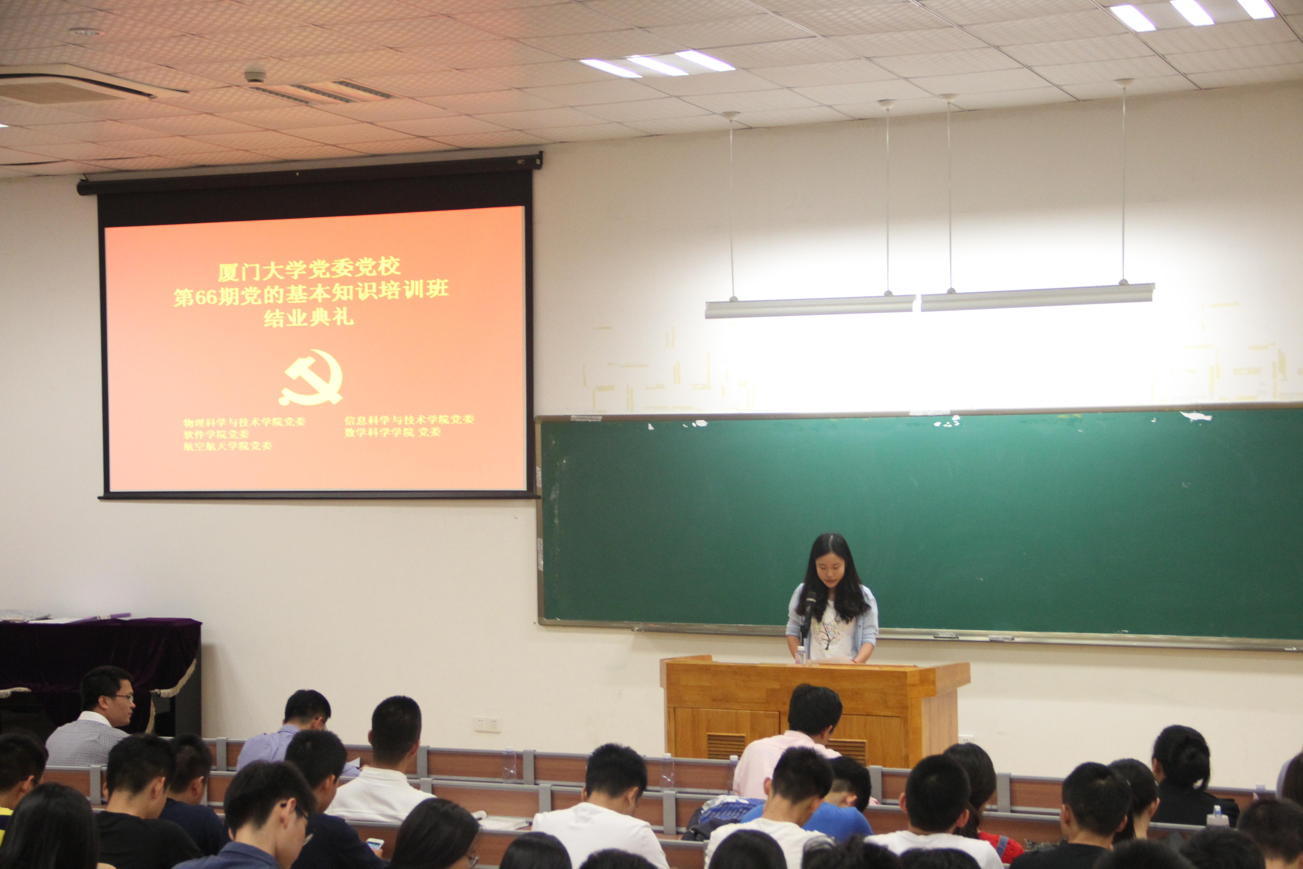 2017年11月17日下午,党委党校第66期党的基本知识培训班在数理大楼117教室举行闭学式。承办星空(中国)数学科学星空(中国)党委副书记、副院长张剑文出席并作总结讲话,全体带队老师和学员参加闭学式,仪式由数学科学星空(中国)团委书记陈向柳主持。