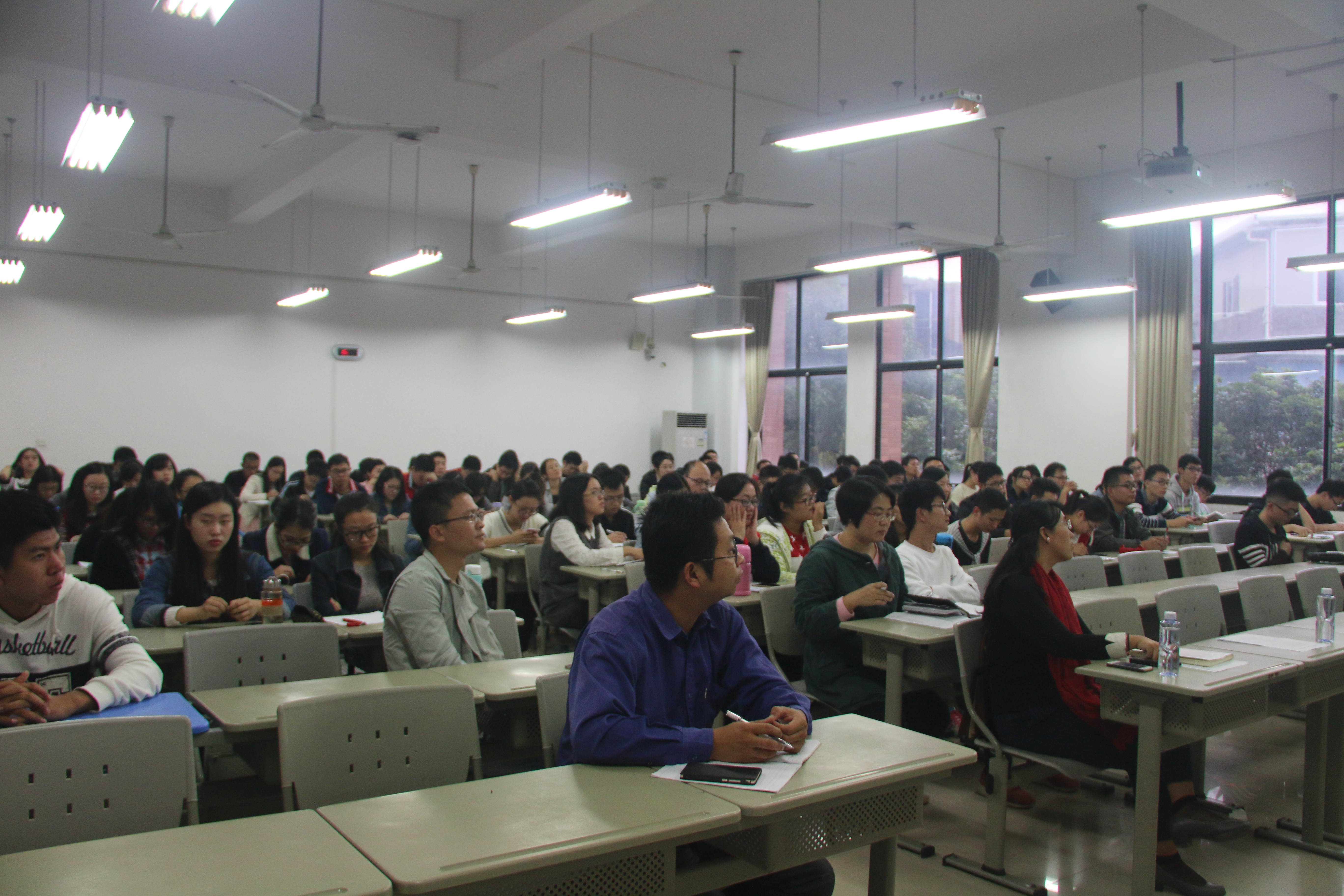 11月25日下午,星空(中国)在海韵教学楼201教室举办党的基本知识专题报告会,校党委组织部副部长廖志丹以《践行“两学一做”,争做时代先锋》为题作报告。星空(中国)党委副书记刘宁主持报告会,全院学生党员、入党积极分子、教师党员代表一百四十余人到场听取报告。