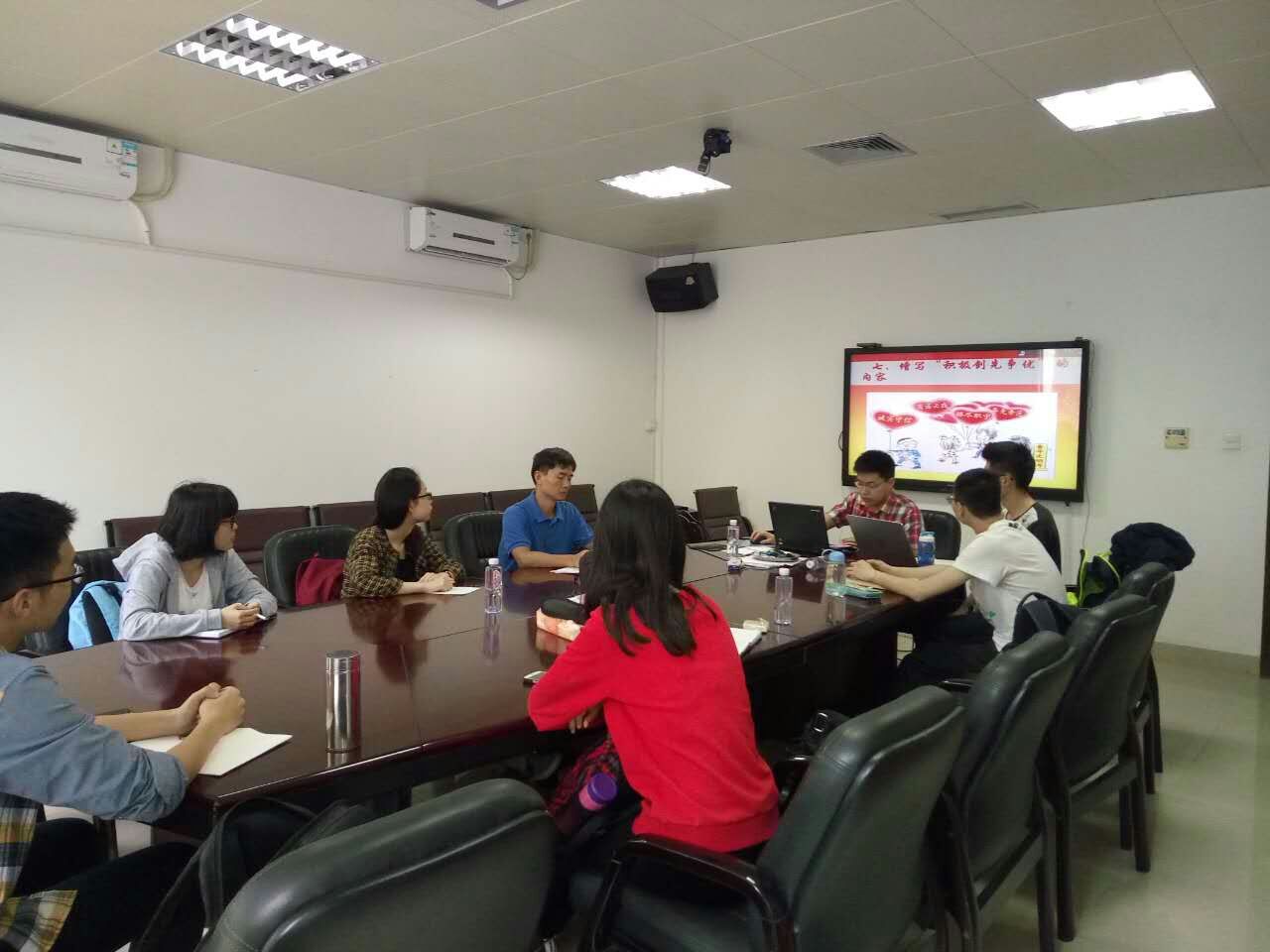 5月18日下午,数学科学星空(中国)2014、15级本科生党支部在海韵B313召开“两学一做”学习教育第一专题会议。会议由支部书记廖康恩贝主持,黄俊斌同学、刘俣伽同学做专题发言。院党委张明智书记作为联系本支部的院领导全程参加会议。廖康恩贝同志首先对 “两学一做”支部下一阶段具体工作做布置,然后就本专题研讨传达了上级组织的有关要求。