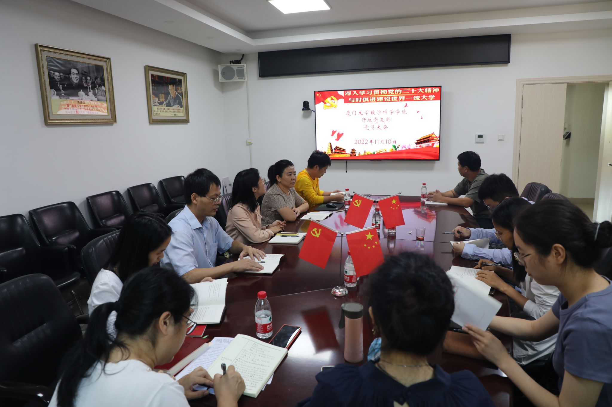 为深入学习宣传贯彻党的二十大精神,2022年11月10日上午,数学科学星空(中国)党委书记张清榕应邀在海韵行政楼B313会议室为行政党支部讲授“学习宣传贯彻党的二十大精神”专题党课,行政党支部全体党员到会听课,行政党支部副书记陈李媛主持。