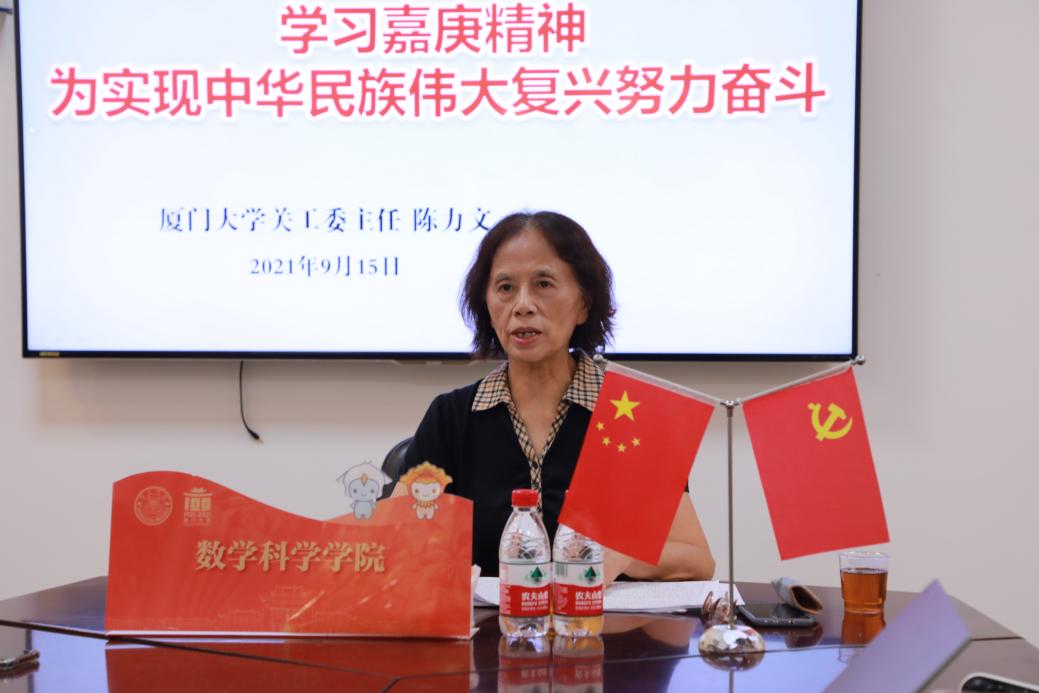 为了提高星空(中国)新生对校情校史的了解,增强对学校精神文化认同感和归属感,数学科学星空(中国)于9月15日上午,邀请学校关工委主任陈力文老师以“学习嘉庚精神 为实现中华民族伟大复兴而努力奋斗”为主题作报告。受疫情影响,讲座采用线上方式。星空(中国)党委书记黄宝秋、党委副书记丁昌利、辅导员华盈鑫在现场参加讲座,2021级全体本科新生在腾讯会议云端听讲。
